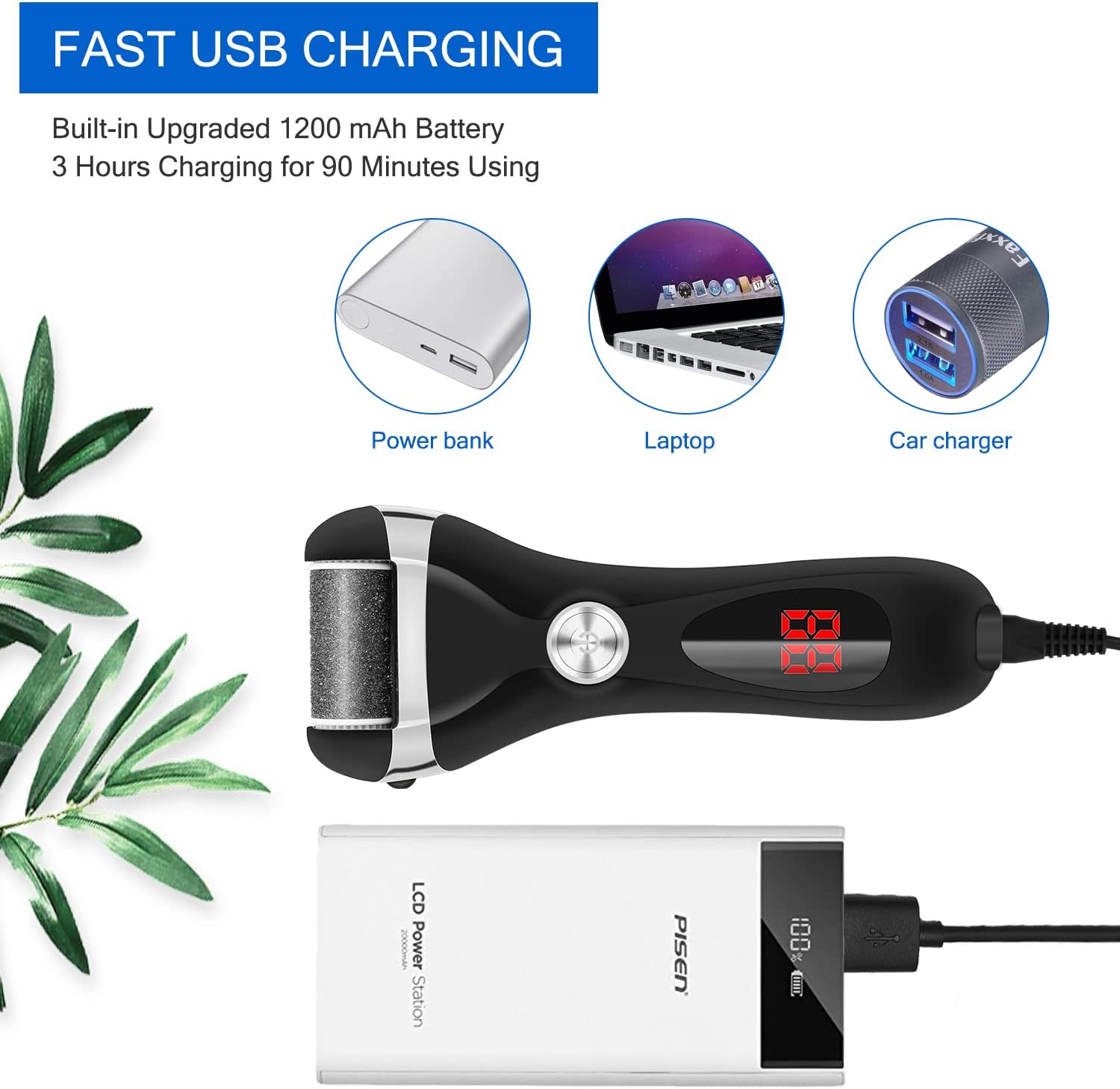 Electric Foot Callus Remover Kit, Elmchee Rechargeable Pedicure Tools Foot Care Feet File with 3 Roller Heads,2 Speed,Battery Display for Remove Cracked Heels Calluses and Dead Skin(Black)