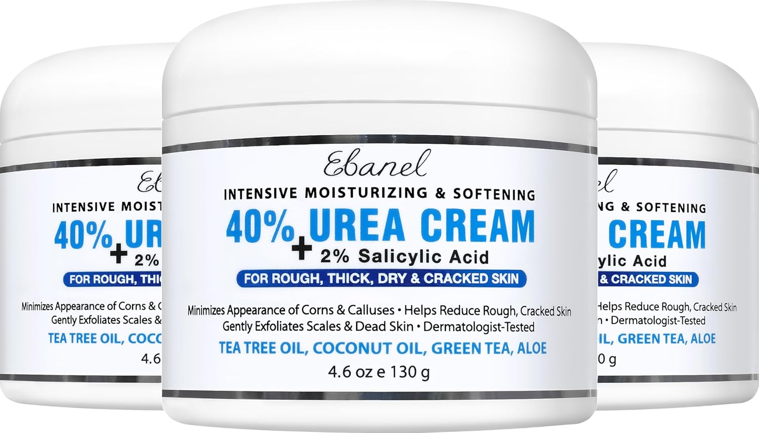 Ebanel Urea Cream 40% plus Salicylic Acid 2%, Foot Cream for Dry Cracked Heels Feet Knees Elbows Hands, Foot Dead Skin Cuticle Callus Remover Toenail Softener, Keratolytic Skin Barrier Repair, 3-Pack