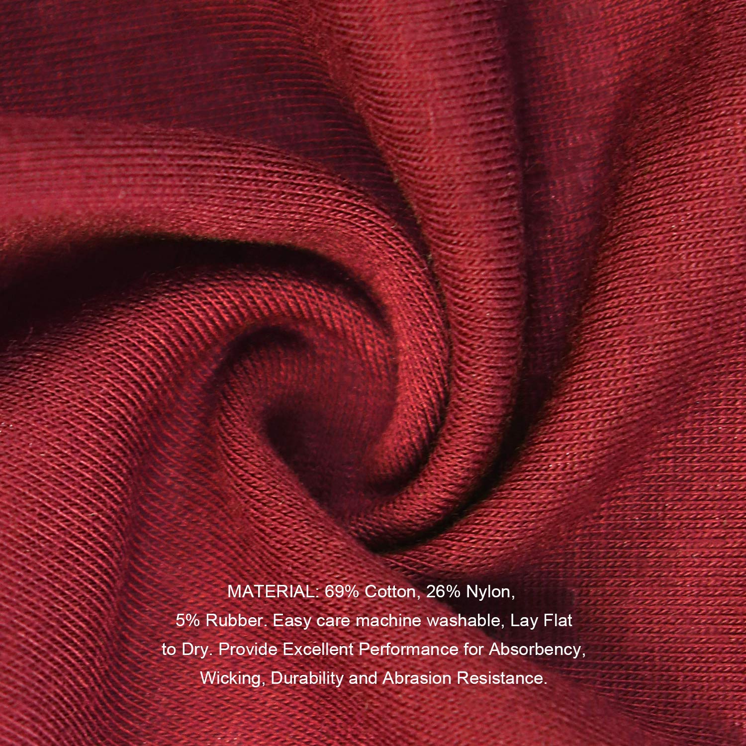 - MATERIAL: 69% Cotton, 26% Nylon, 5% Rubber. Easy care machine washable, Lay Flat to Dry. Provide Excellent Performance for Absorbency, Wicking, Durability and Abrasion Resistance.