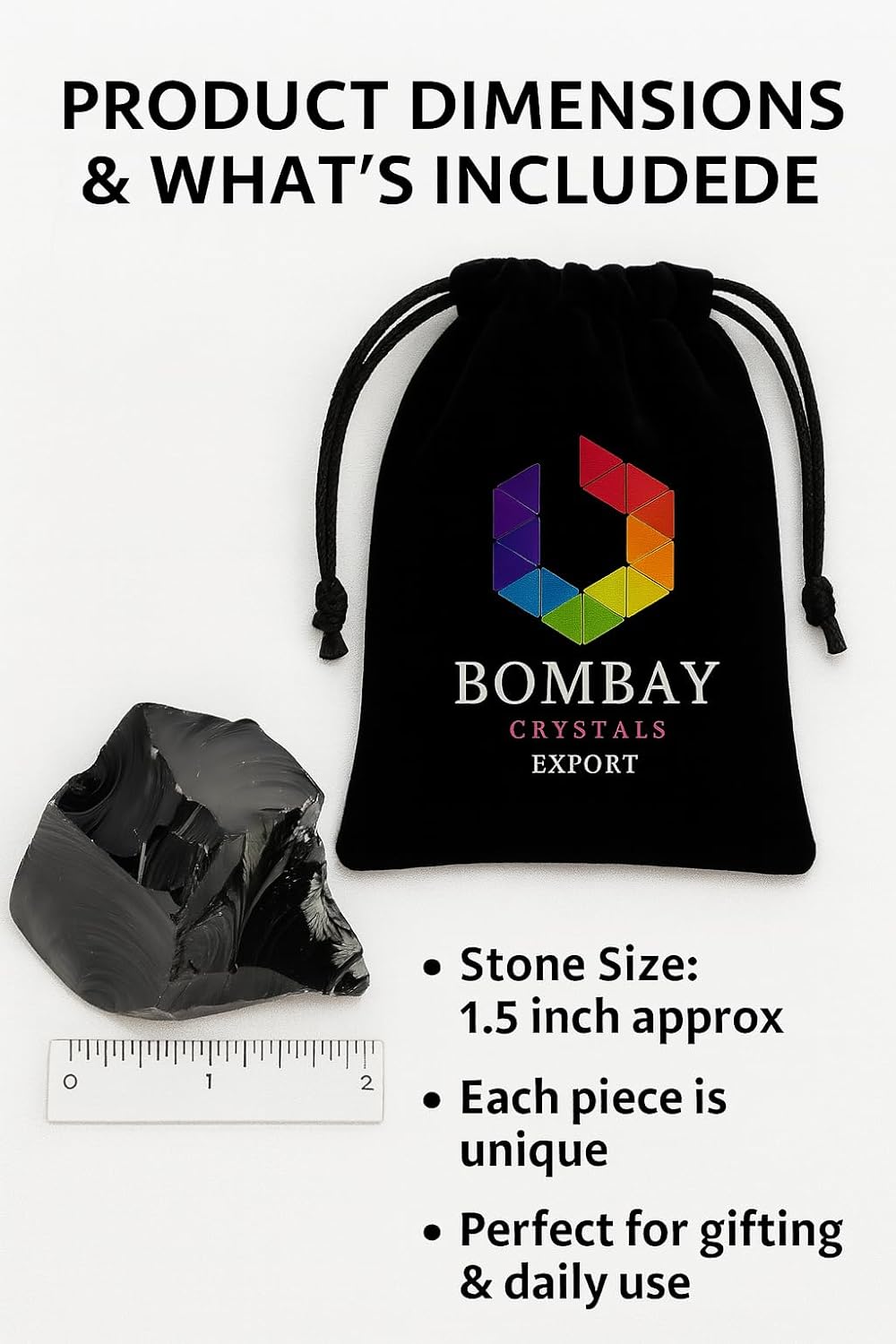 - 1️⃣ Premium Raw Black Obsidian Hand-selected natural rough Black Obsidian stones sized 1.25 to 2 inches. Each stone features rich deep black color, natural texture, and unique volcanic formation.