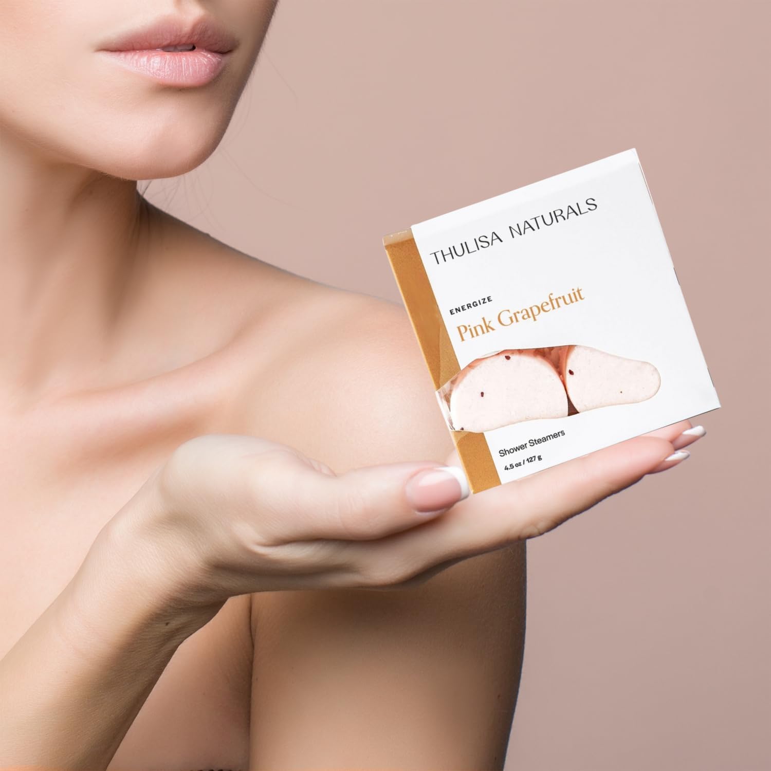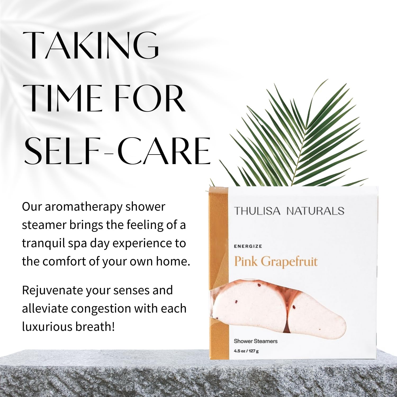 Thulisa Naturals Pink Grapefruit Shower Steamers Aromatherapy | Organic Shower Bombs with Essential Oils | Self Care Christmas Birthday & Spa Gifts for Women & Men | Stocking Stuffers | 4 Pack