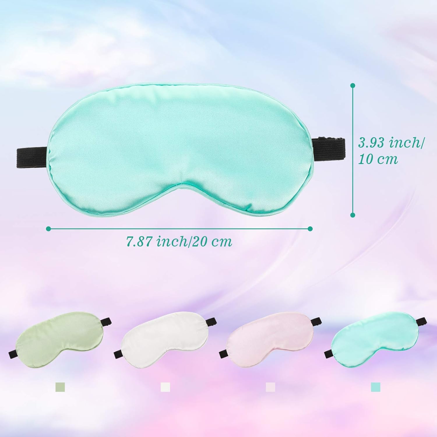 - Package and size: 4 pieces silk sleep eye mask in 4 colors (light green, emerald, silver, light pink), each measures 7.87 x 3.93 inch/ 20 x 10 cm, enough quantity for personal use, and you can share some with your family members or friends as nice gift, bringing them deep, uninterrupted sleep