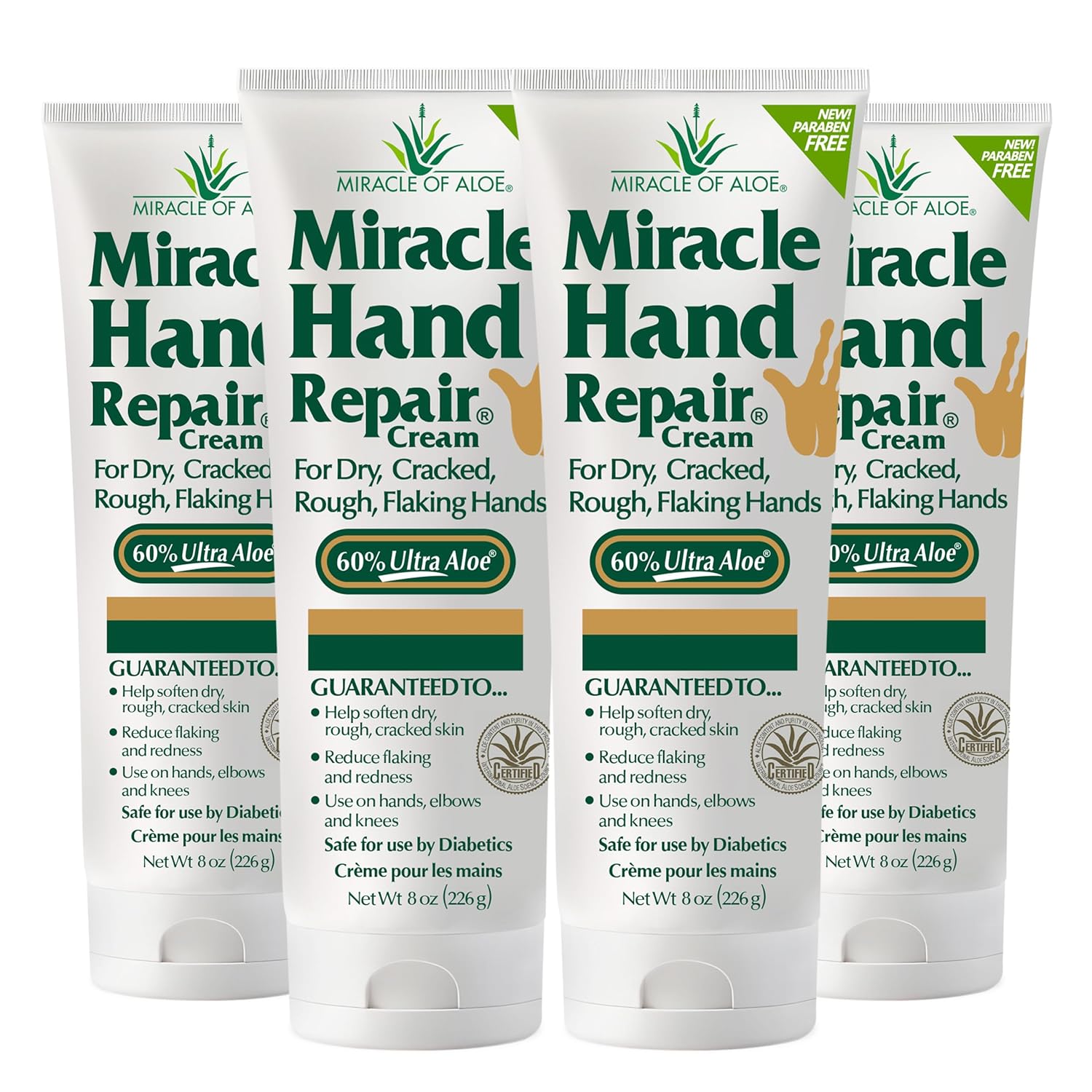 Miracle Hand Repair Cream for Dry Cracked Hands 8 oz Best Healing Hand Cream with 60% Aloe Vera - Non-Greasy Moisturizer for Working Hands - Fast Absorbing Lotion for Extremely Dry Skin (4-Pack)