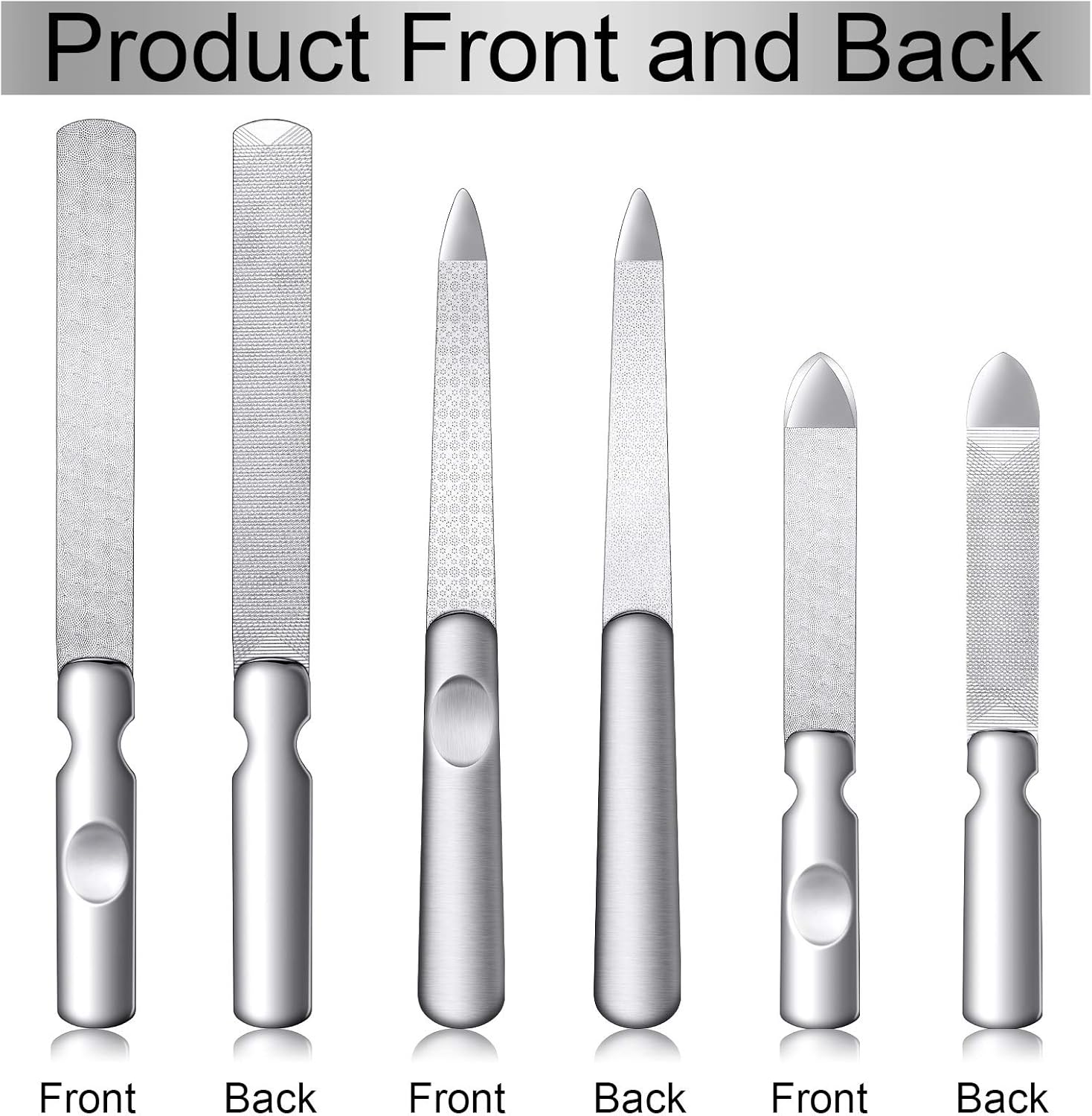 - Varied in Dimensions: our stainless steel nail file buffers contain 3 various sizes, nail files with pointed head are approx. 116 x 10 mm/ 4.6 x 0.39 inches and approx. 92 x 10 mm/ 3.6 x 0.39 inches respectively, the nail file with round head is approx. 121 x 11 mm/ 4.76 x 0.43 inches, diverse dimensions can meet your diverse manicure purposes