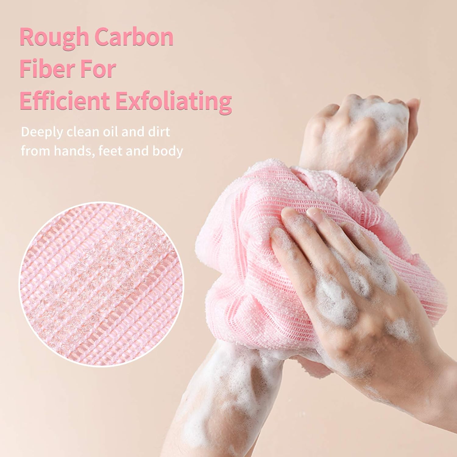 Yiclick Exfoliating Body Scrubber, Back Scrubber for Shower Bath, Japanese Scrub Wash Cloth, Exfoliating Washcloth Towel for Men Women, Body Exfoliator Loofah Luffa Sponge Net Rag Back Washer (Pink)