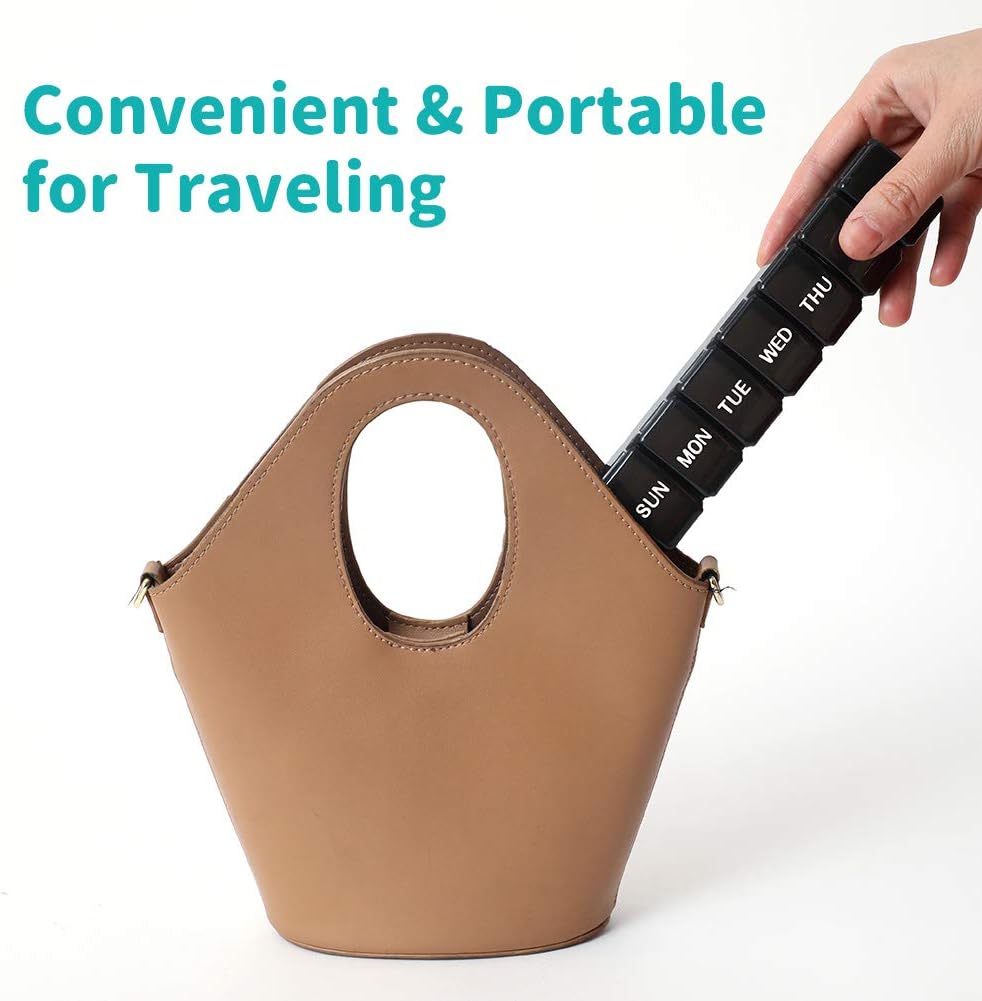 2 Packs Small Weekly Pill Organizer,Pocket Daily Pill Case Pill Box for Pills/Vitamin/Fish Oil/Supplements (Black)