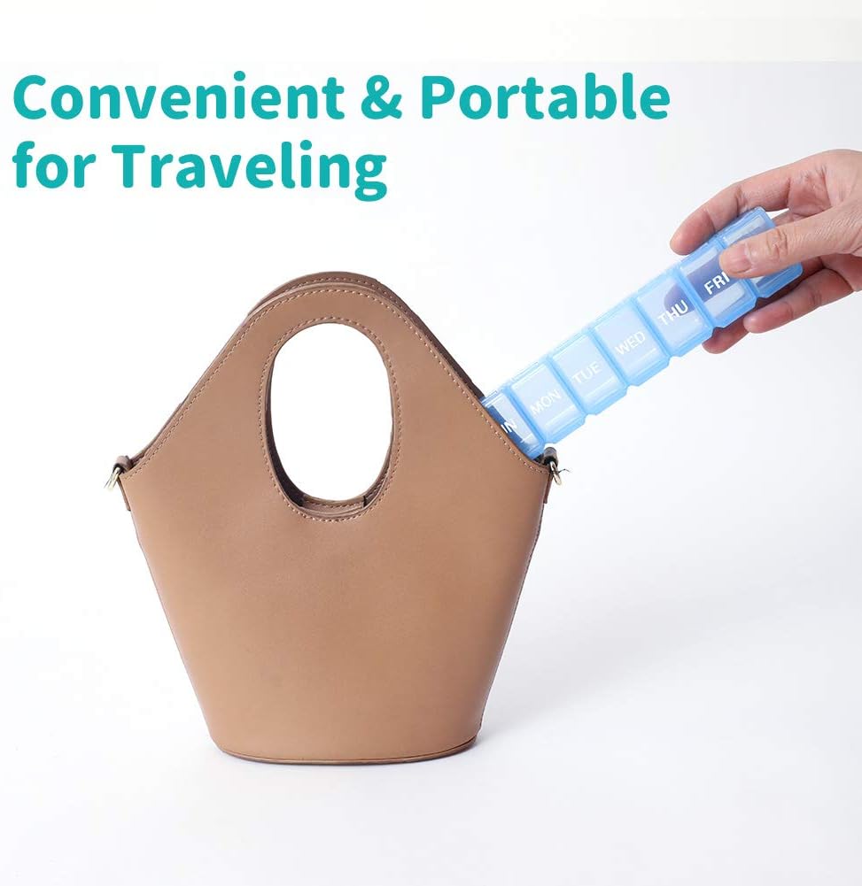 2 Packs Small Weekly Pill Organizer,Pocket Daily Pill Case Pill Box for Pills/Vitamin/Fish Oil/Supplements (Blue)