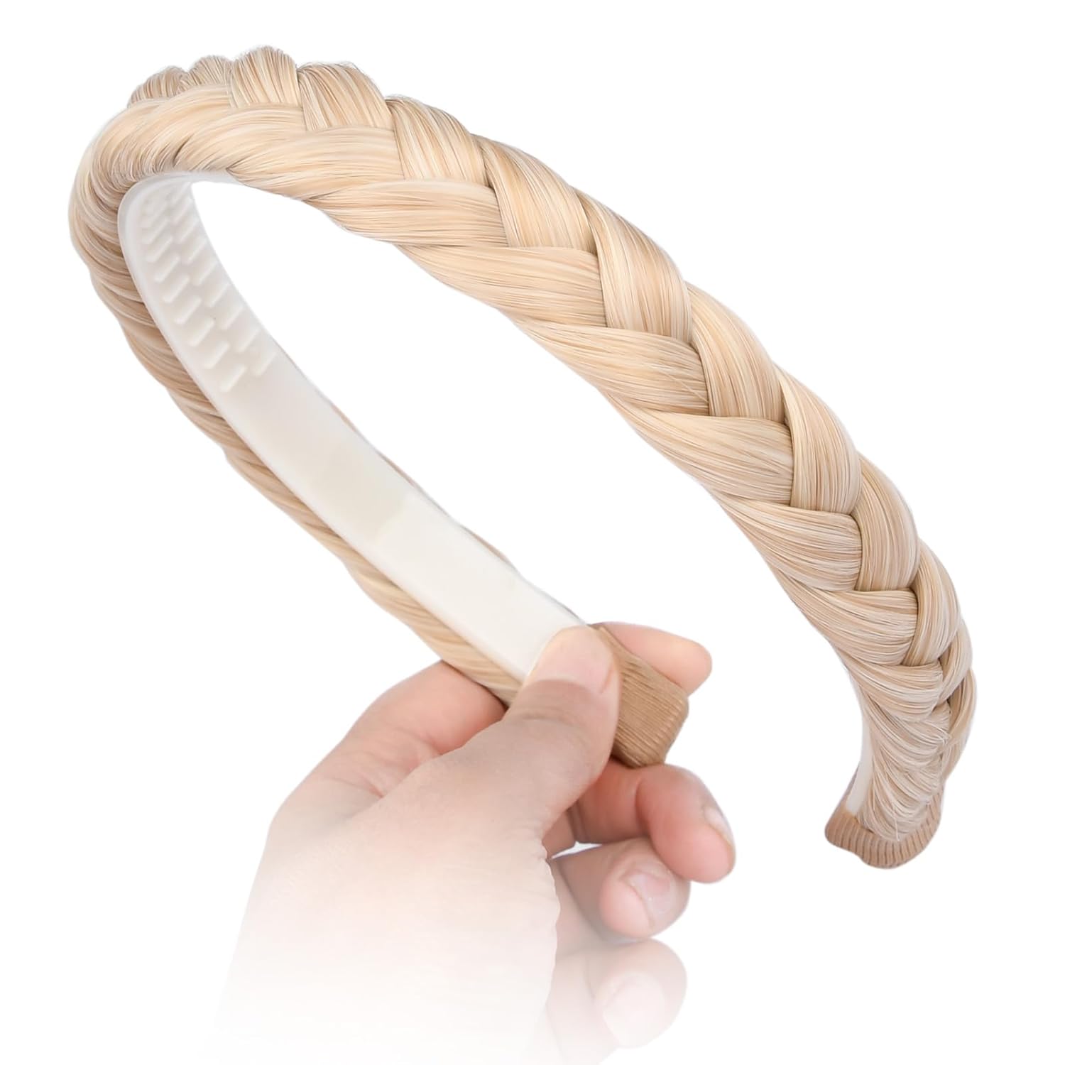 DIGUAN Width 0.9 inches Synthetic Hair Plaited Headband Braid With Teeth Hair Band Accessories for Women Girl (Light Honey Blonde)