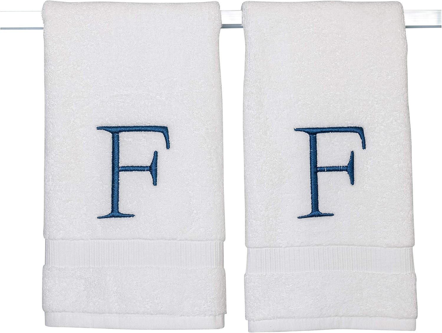 Monogrammed Hand Towels for Bathroom - Luxury Hotel Quality Personalized Initial Decorative Embroidered Bath Towel for Powder Room, Spa - GOTS Organic Certified - Set of 2 Navy Letter F