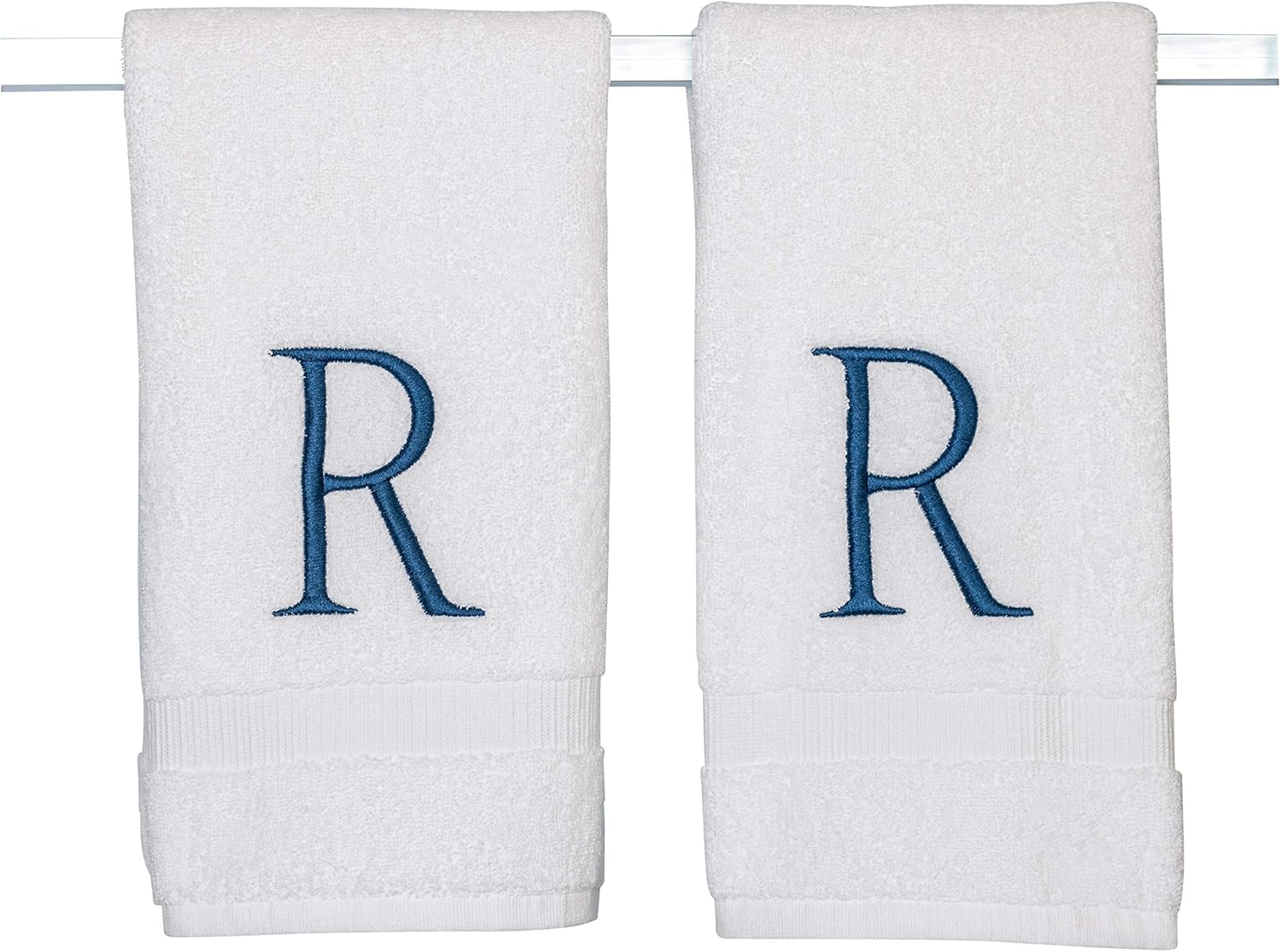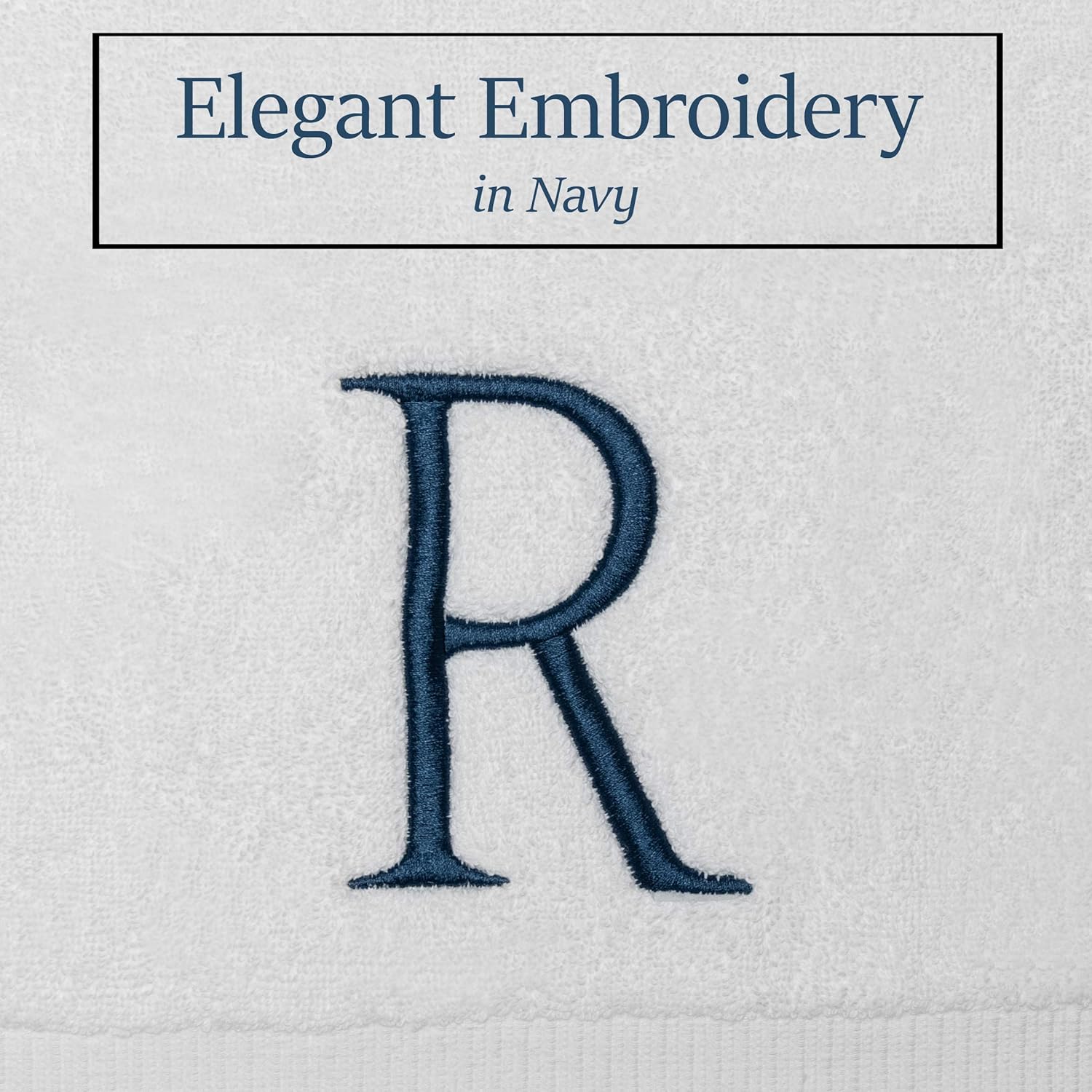 Monogrammed Hand Towels for Bathroom - Luxury Hotel Quality Personalized Initial Decorative Embroidered Bath Towel for Powder Room, Spa - GOTS Organic Certified - Set of 2 Navy Letter R