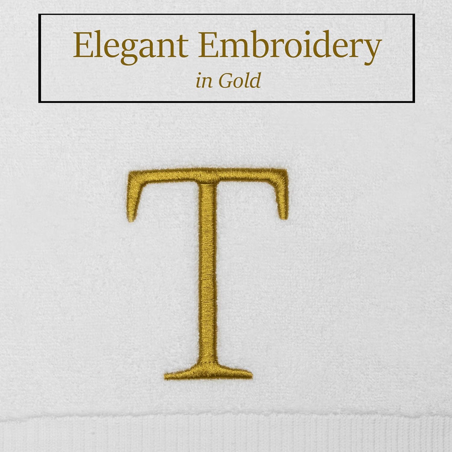 Monogrammed Hand Towels for Bathroom - Luxury Hotel Quality Personalized Initial Decorative Embroidered Bath Towel for Powder Room, Spa - GOTS Organic Certified - Set of 2 Gold Letter T