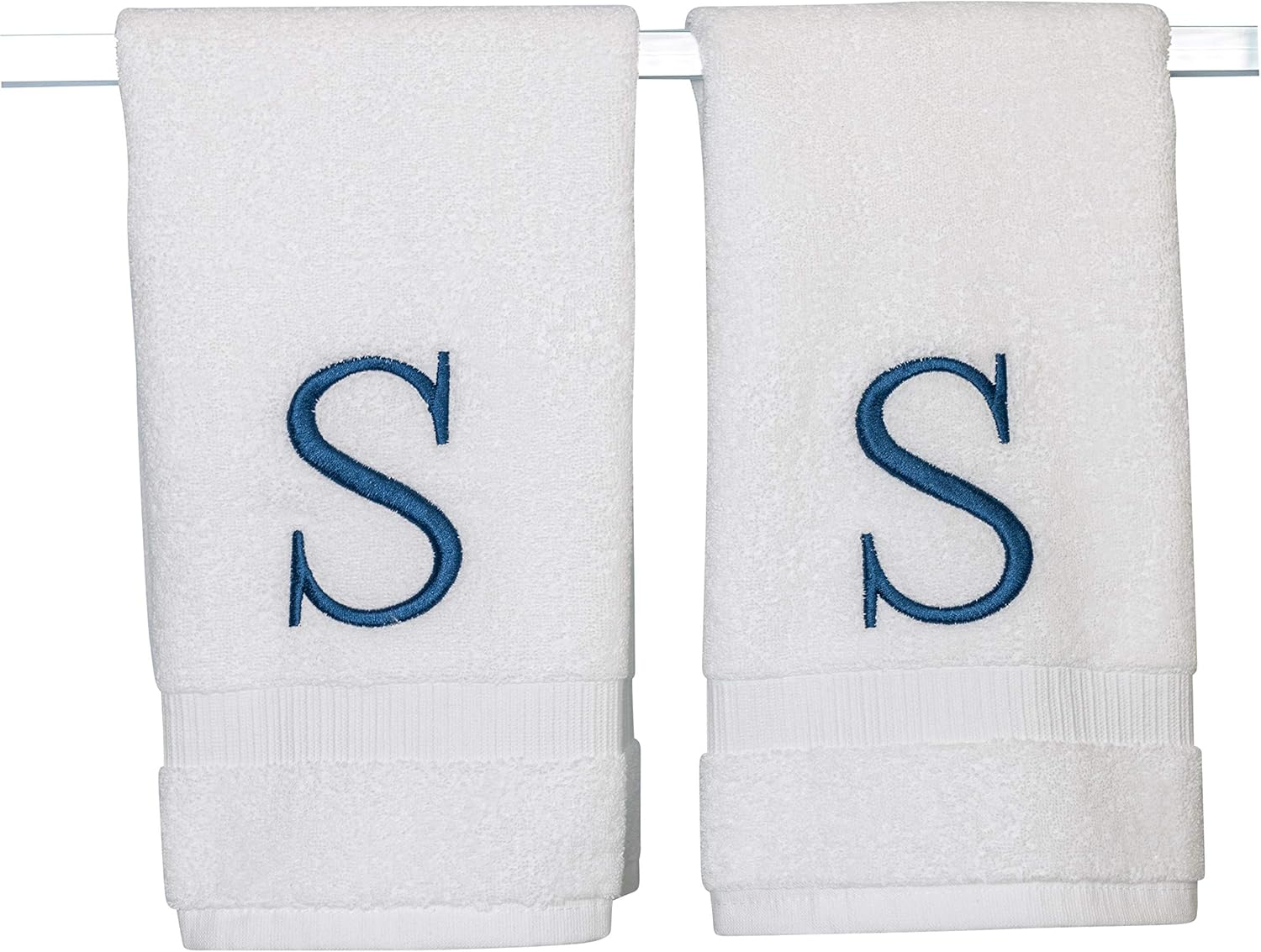 Monogrammed Hand Towels for Bathroom - Luxury Hotel Quality Personalized Initial Decorative Embroidered Bath Towel for Powder Room, Spa - GOTS Organic Certified - Set of 2 Navy Letter S