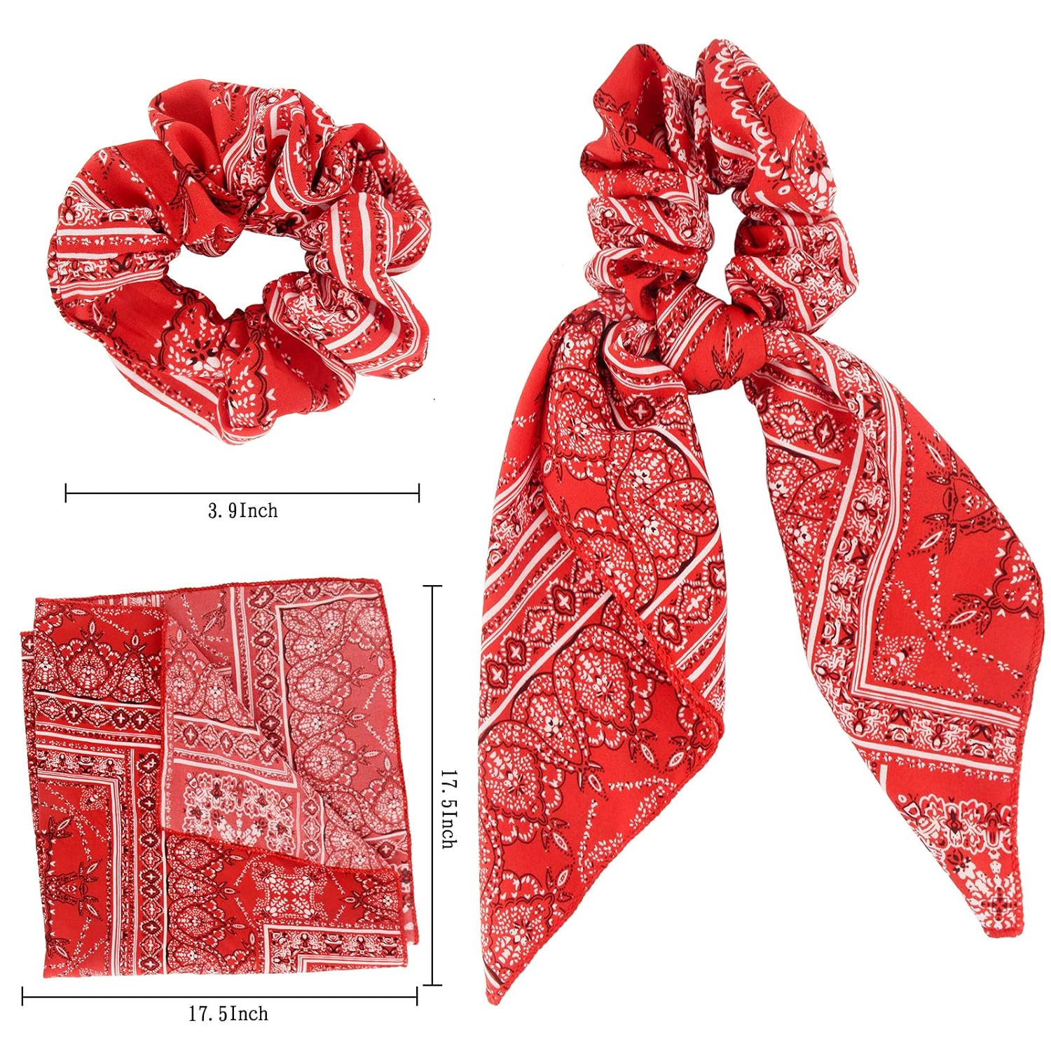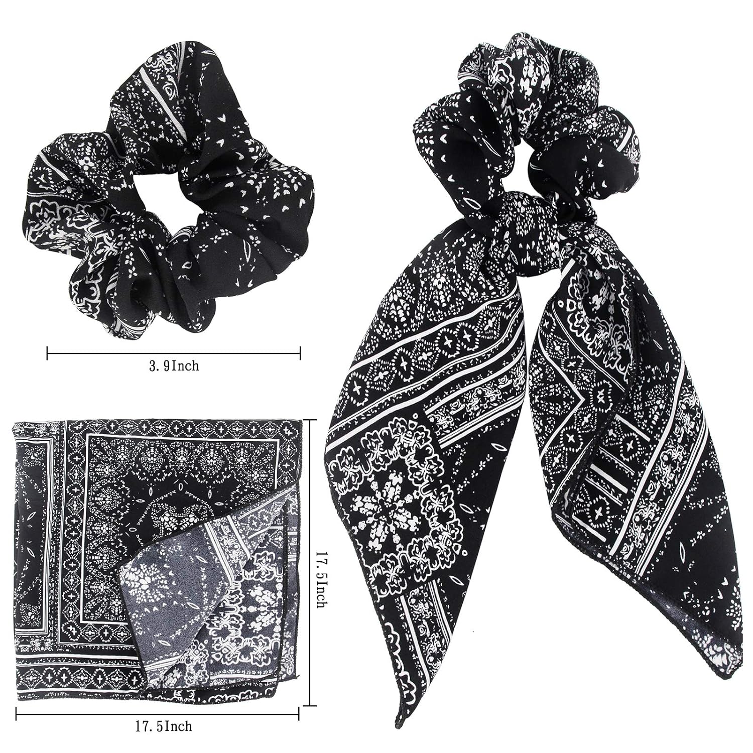 - Paisley Flower:6pcs paisley flower scarf-scrunchies will provide you different accessories for dress-up and mood.