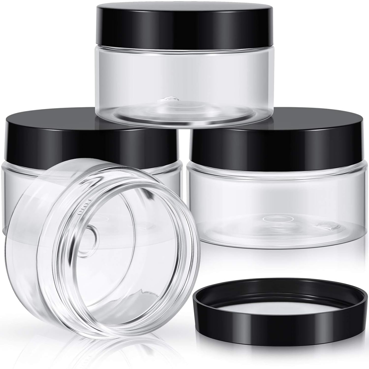 - What you receive: there are 4 pieces plastic jars with screw-on lids. They are durable and refillable, measuring about 5.2 cm/ 2.05 inches in diameter, 4.3 cm/ 1.7 inches in height