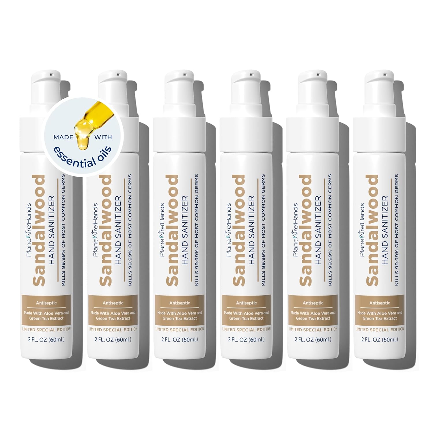 PlaneAire Sandalwood Lotion Hand Sanitizer | Travel Essential | TSA-Approved | Moisturizing Hand Lotion | Plant-Based and Vegan | Made with Essential Oils | Travel Size | 6-Pack