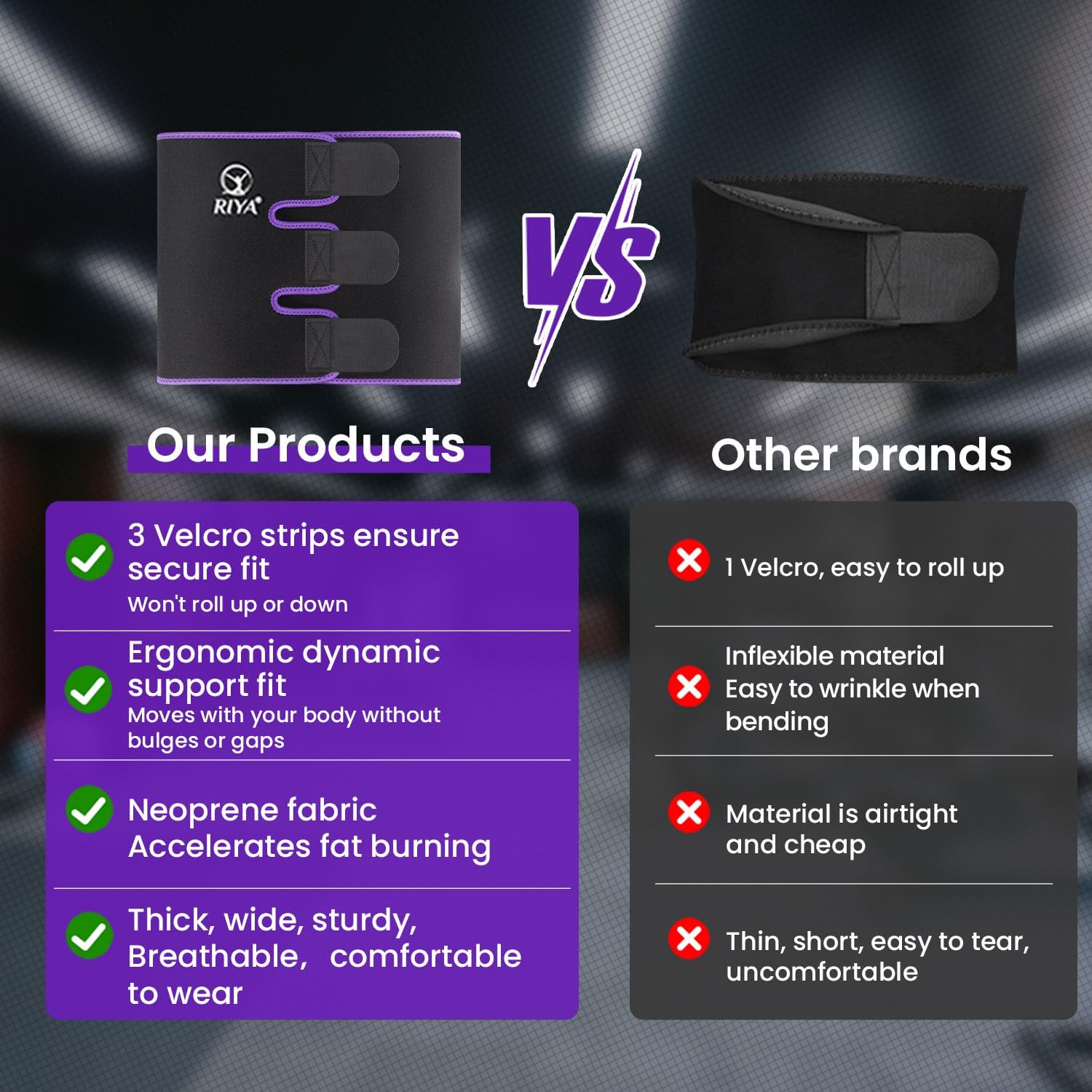 • Custom Fit for All Body Shape - The upgraded RIYA waist trimmer features triple adjustable Velcro straps for a secure, customized fit that stays perfectly in place, with no rolling, slipping, or riding up no matter how intense your workout. If you prefer full belly coverage and a tighter wrap β€” PLEASE SIZE UP FOR BEST RESULTS.