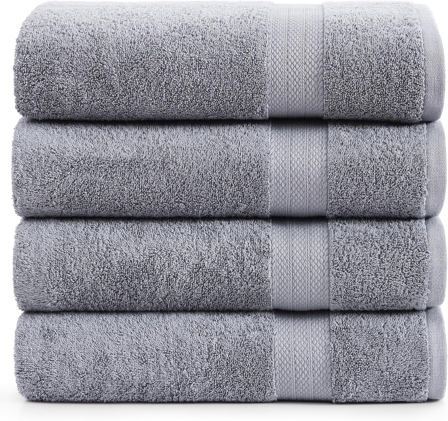 LANE LINEN 100% Cotton Bath Towels Set of 4 (28"x54") - Ring Spun Mercerized Cotton Extra Large Bathroom Towel Sets - Quick Dry, Soft & Absorbent Grey Towels Set - Pre Shrunk, Fade Resistant - Grey