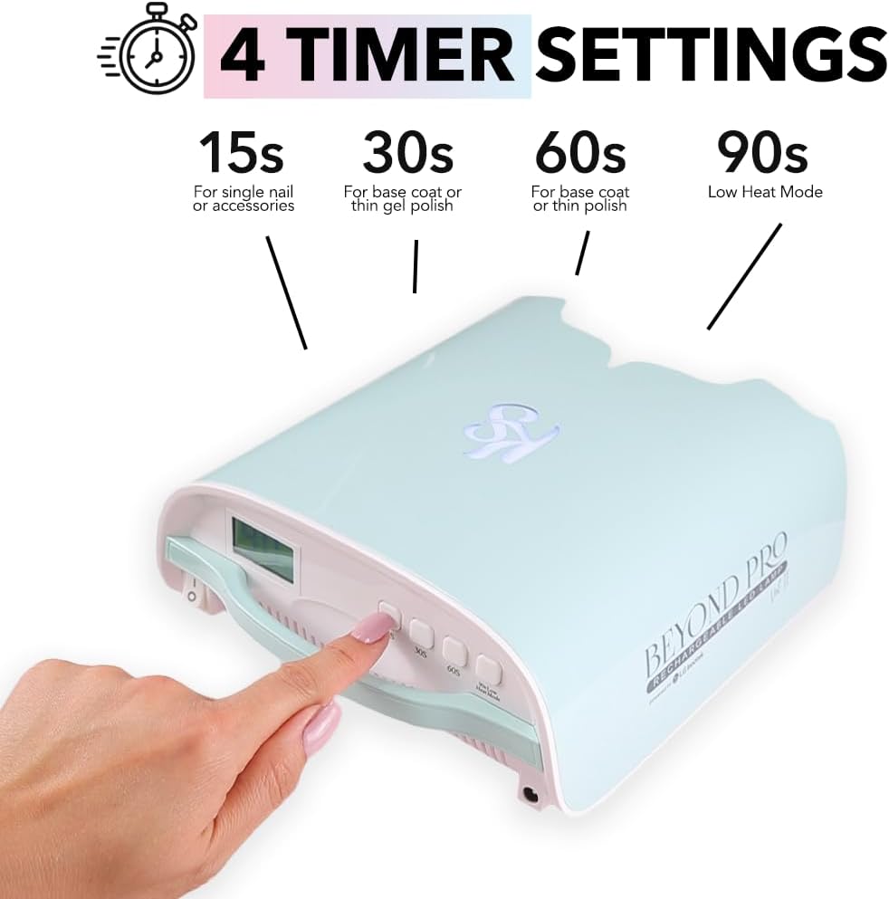 - 【Professional-Grade Power】Elevate your manicure with the Beyond Pro Vol. II, meticulously designed for top-tier performance. Its cutting-edge LED system, enhanced with strategically positioned LEDs and superior reflection cups, guarantees efficient and even curing. This powerhouse is a perfect fit for Gel Polish and detailed Nail Art, offering a fast, consistent cure with every use, essential for professional and home salons alike.