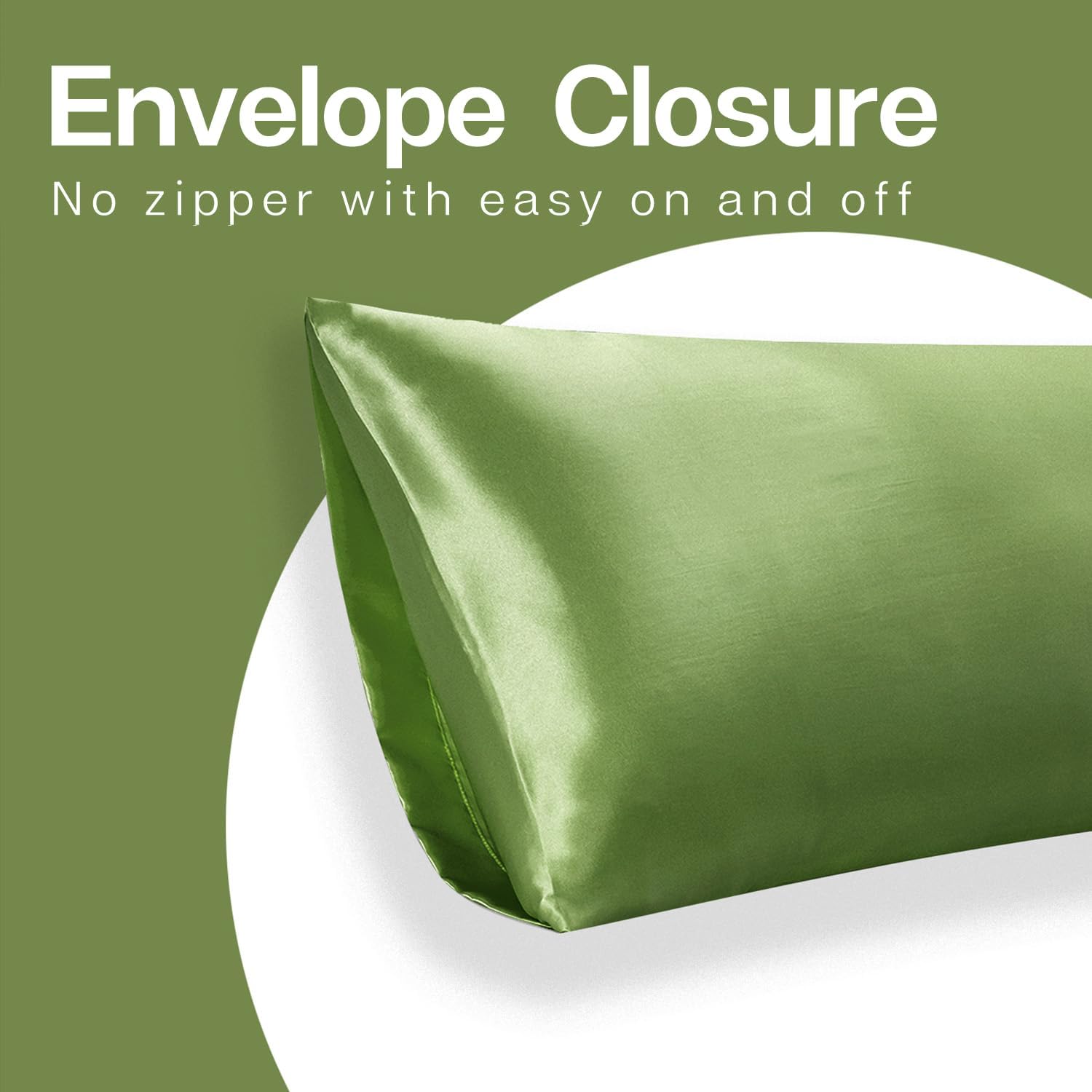 MR&HM Satin Body Pillow Cover, Soft and Breathable Body Pillow Case with Envelope Closure, Cooling and Silky Long Pillowcase for Hair and Skin,Grey (20x54, Sage)