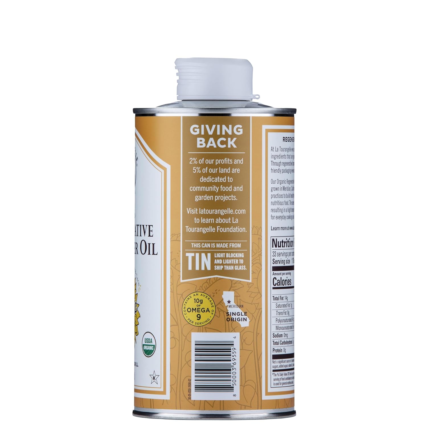 - NATURAL & SUSTAINABLE: La Tourangelle's Organic Regenerative Sunflower Oil is sourced from sustainable farming practices that provide nutrition back to soil and capture carbon emissions.