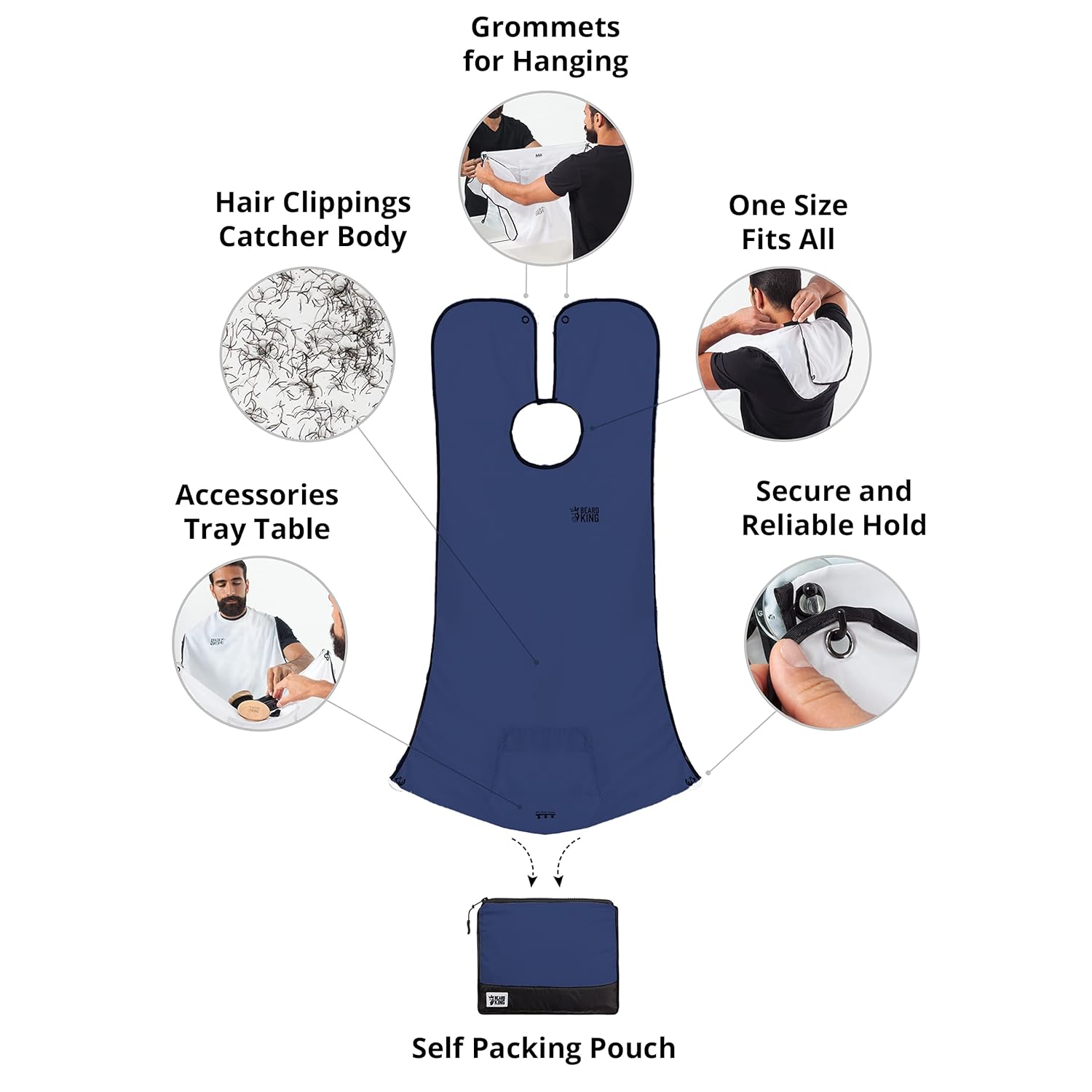 BEARD KING Beard Bib Apron - Shaving Set for Dad - As Seen on Shark Tank - Men's Hair Catcher for Shaving - Grooming Accessories - Packing Pouch, Blue