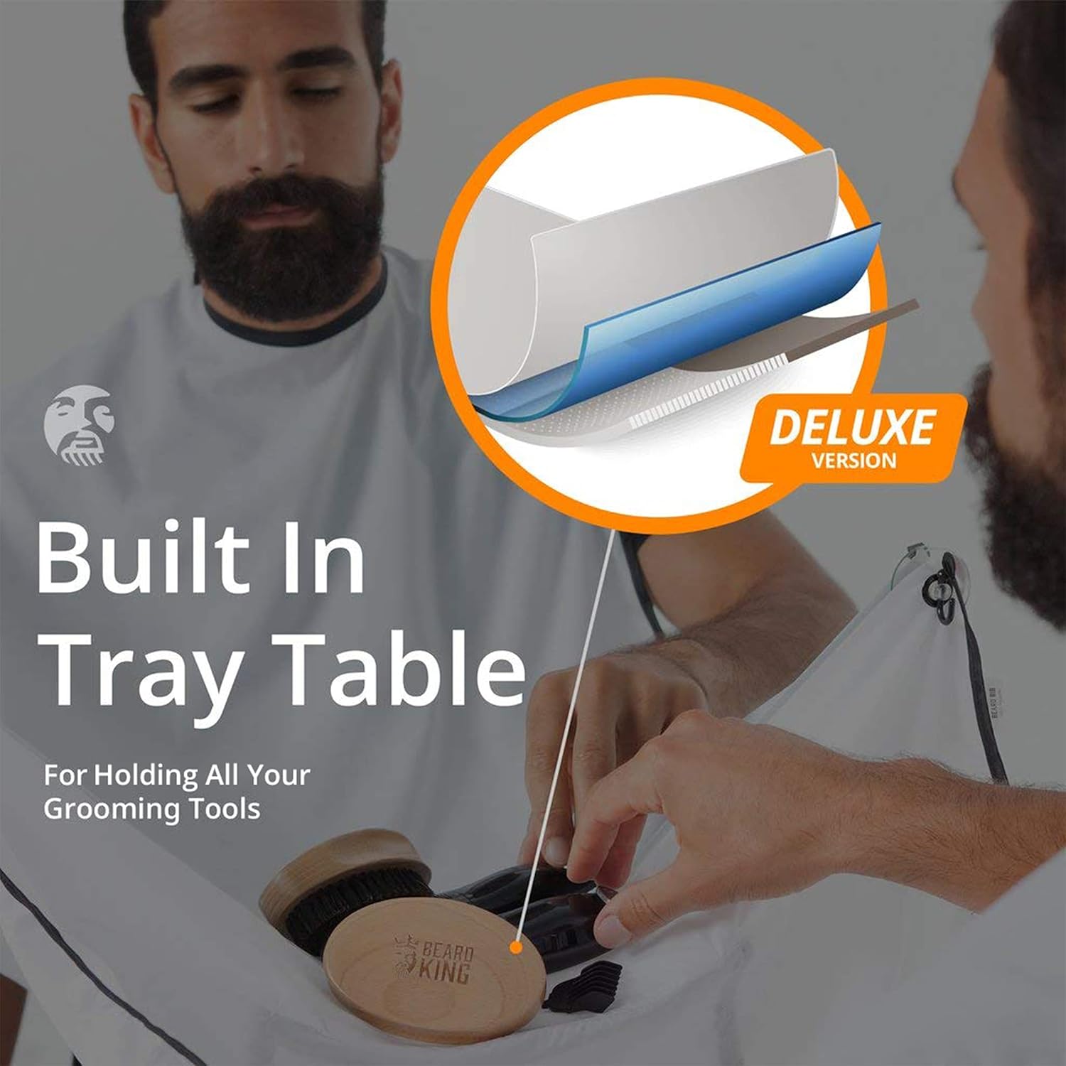 - EFFECTIVE: Be prepared for any perilous quest! This deluxe set for men includes the static and stick-free beard apron that protects chest, neck and shoulders. Also includes strong suction cups to secure while using.