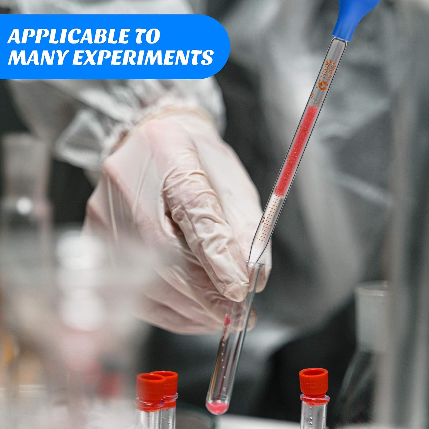- Easy to reading: clear reading lines on the pipettes' wall, number from 1-10 from mouth to head; Glass wall is printed with clear and precise scale, easy for you to measure the liquid