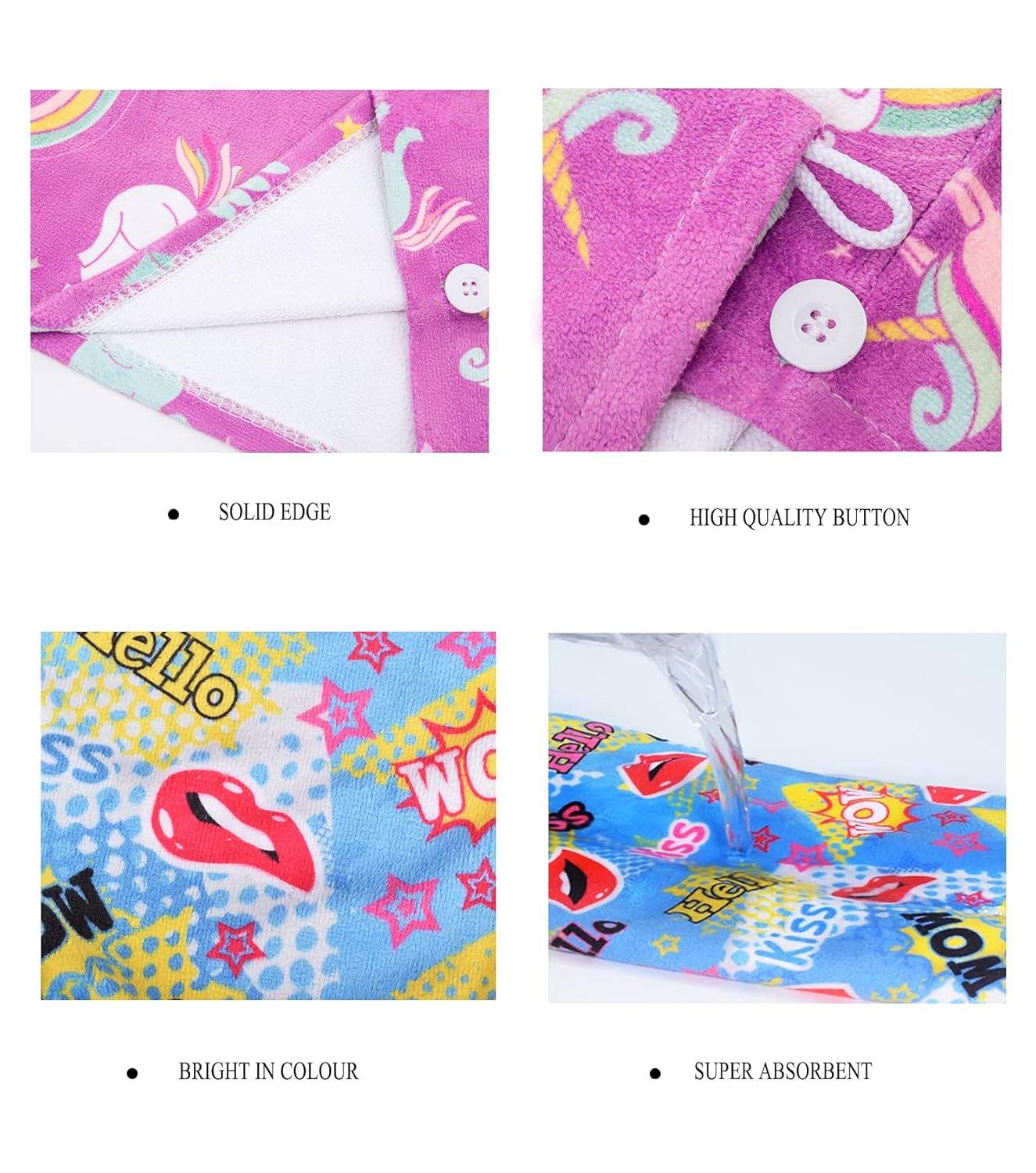 - FITS PERFECTLY FOR MOST HAIR TYPES: Our Dry Hair Towel With a General Size Of 25.6"x9.8" (65cm*25cm) For Most Head Sizes And Hair Types. From Kids Aged 12 to Adults with Long Or Short, Thick Or Fine, Delicate Or Wavy Hair. 3 Colors in 1 Pack (Animals&Flowers&Kiss).This will be a great Mothers Day gifts!