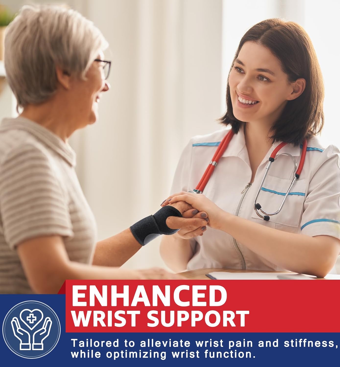 - Comfortable All-Day Wear: Universally designed to fit both left and right hands, our one-size-fits-all wrist support offers a snug, flexible, and comfortable experience. With unrestricted thumb movement, it ensures comfort throughout the day.