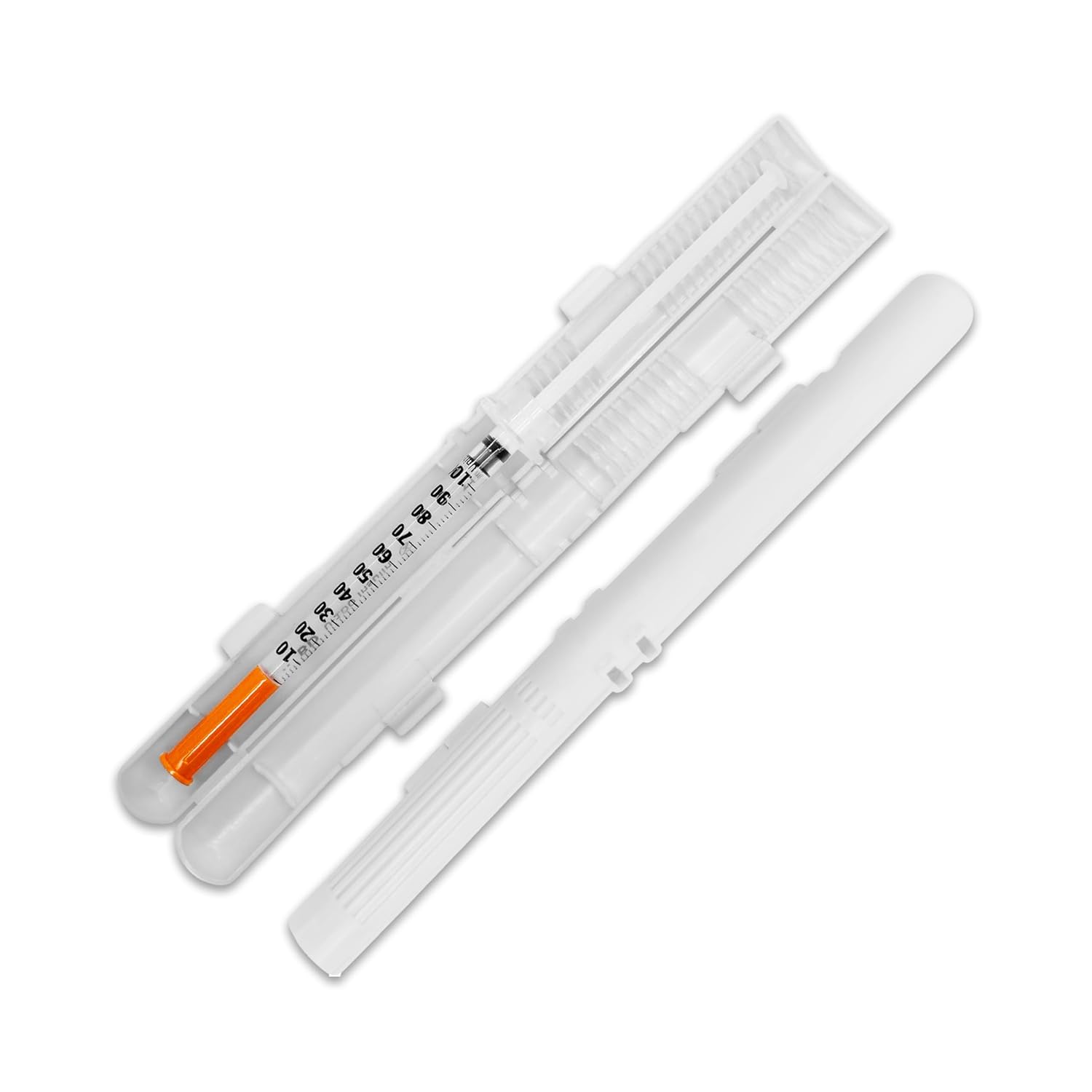 - Simply pre-fill syringes, up to 0.6 ml, and snap the case shut for safe transport
