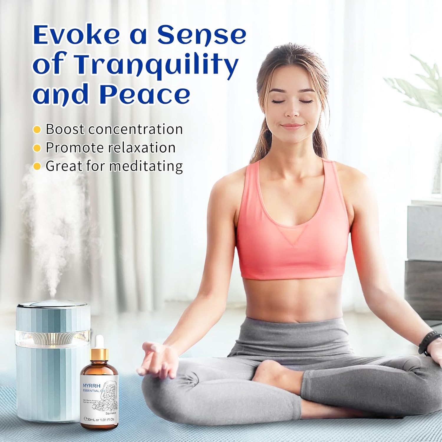 - Multiple Use Scenarios: Add 3-4 drops of myrrh essential oil to the diffuser to help create a calming and relaxing atmosphere for yoga, meditation, reading, massage, aromatherapy, saunas, spas, bedrooms, living rooms, bathrooms, showers and more