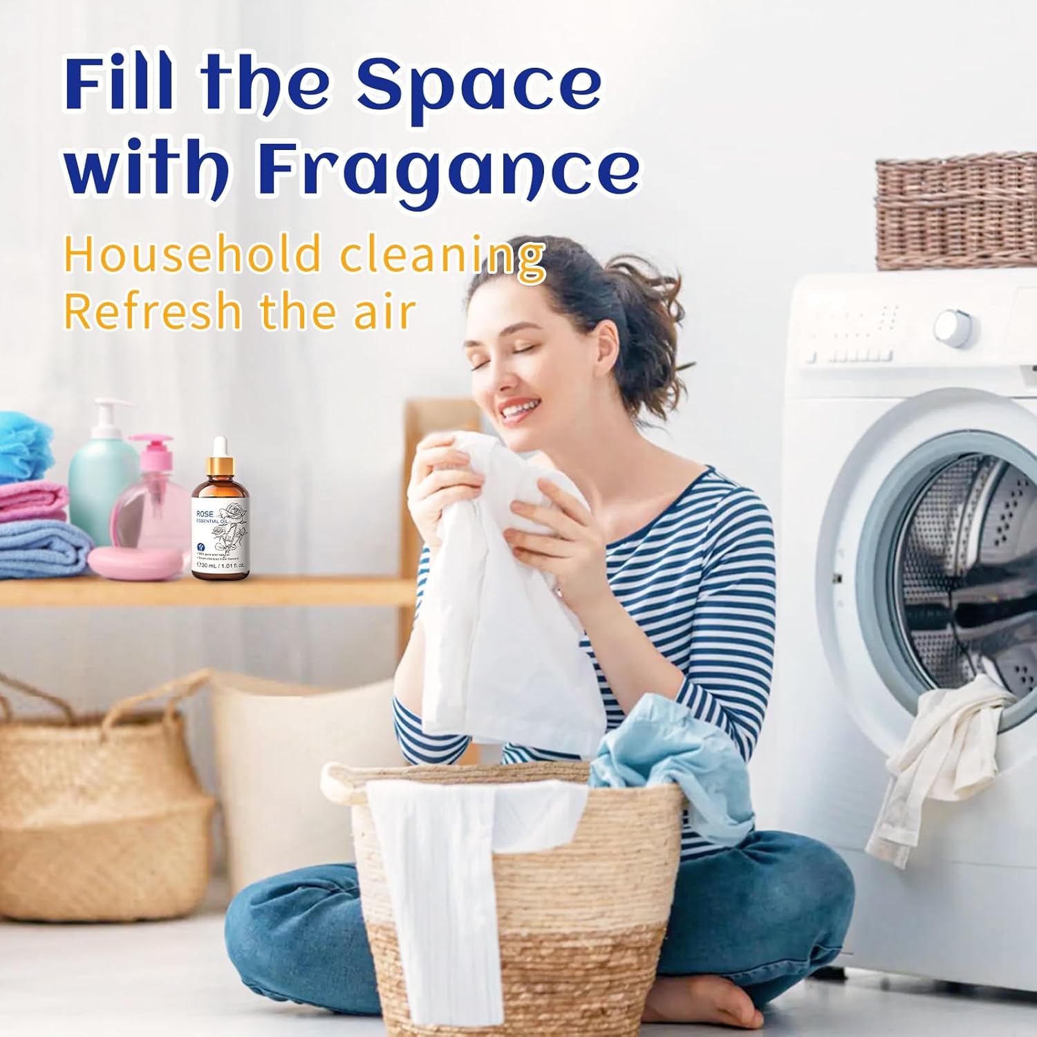 HIQILI Rose Essential Oil 1 Fl Oz, 100% Natural Therapeutic Grade for Aromatherapy, Diffuser, Skin Care, Massage, Includes Premium Quality Glass Dropper