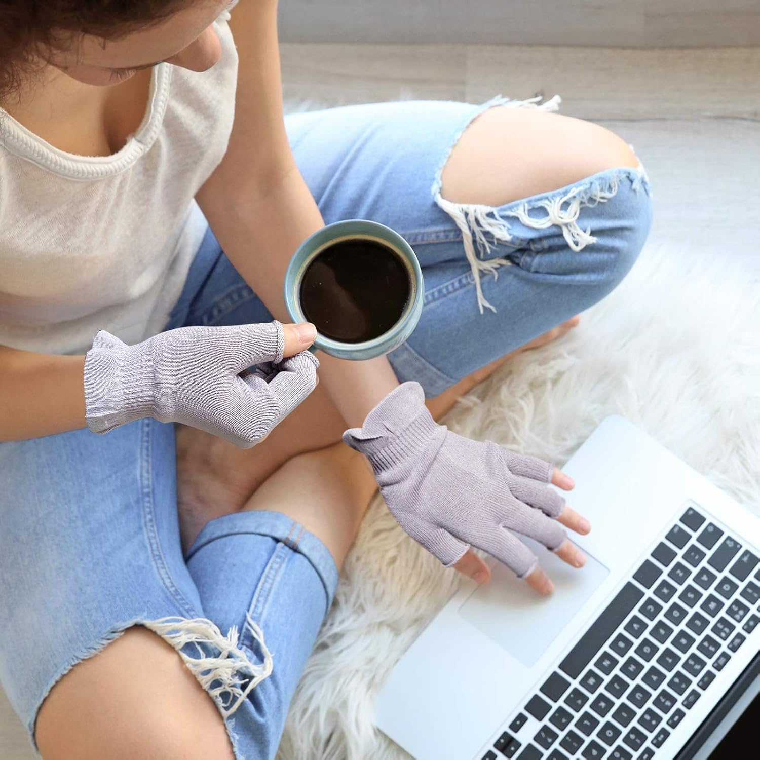 - FINGERLESS DESIGN: the fingerless design makes fingers move flexibly working, answering calls, exercising, or typing at your smartphone, tablet, or other touch screen devices while you are moisturizing your hands care. At the same time, it avoids the binding of the gloves to the nail.