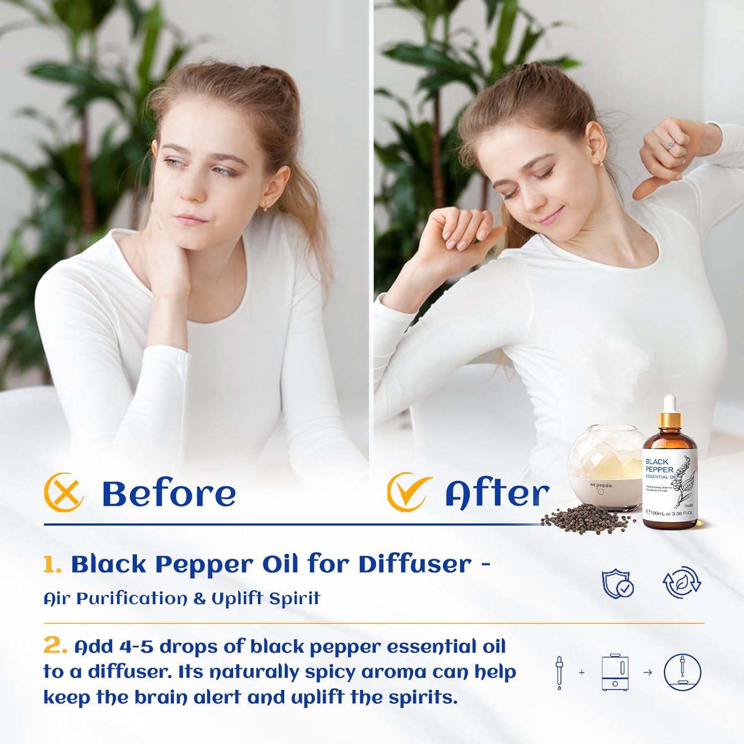 - Multi Purpose: Black pepper essential oil can be diluted and used in massage to enjoy its warming and relaxing effects;