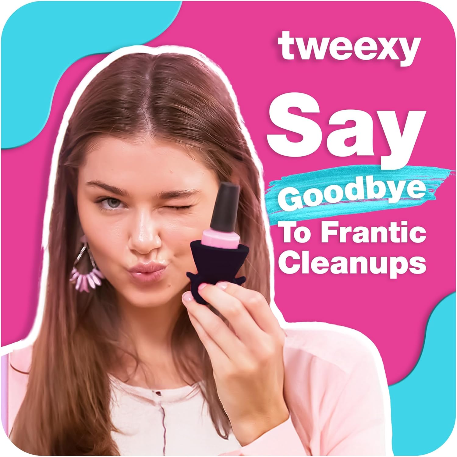 - THE SMARTEST NAIL TOOLS. Using the Tweexy nail polish holder is like having your own personal assistant. Gripping any pair of fingers like it’s a golden ticket, the patented Tweexy keeps your nail polish bottle firmly held while you quickly apply your polish more efficiently than ever before. Save time and effort with Tweexy.