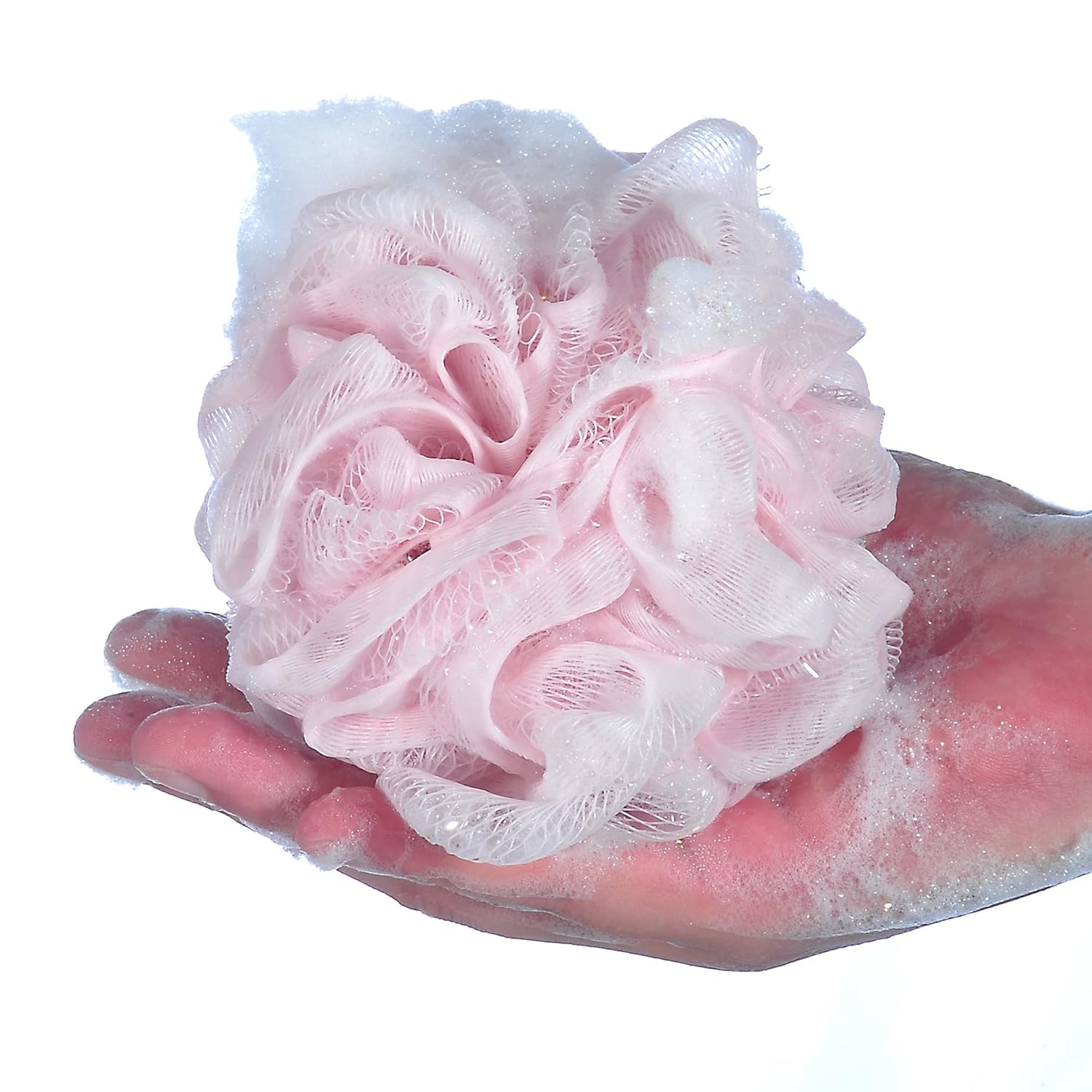 60g/pcs Pink Mesh Bath Sponge Shower Pouf Loofahs Shower Puff Pack of 4 (Pink)