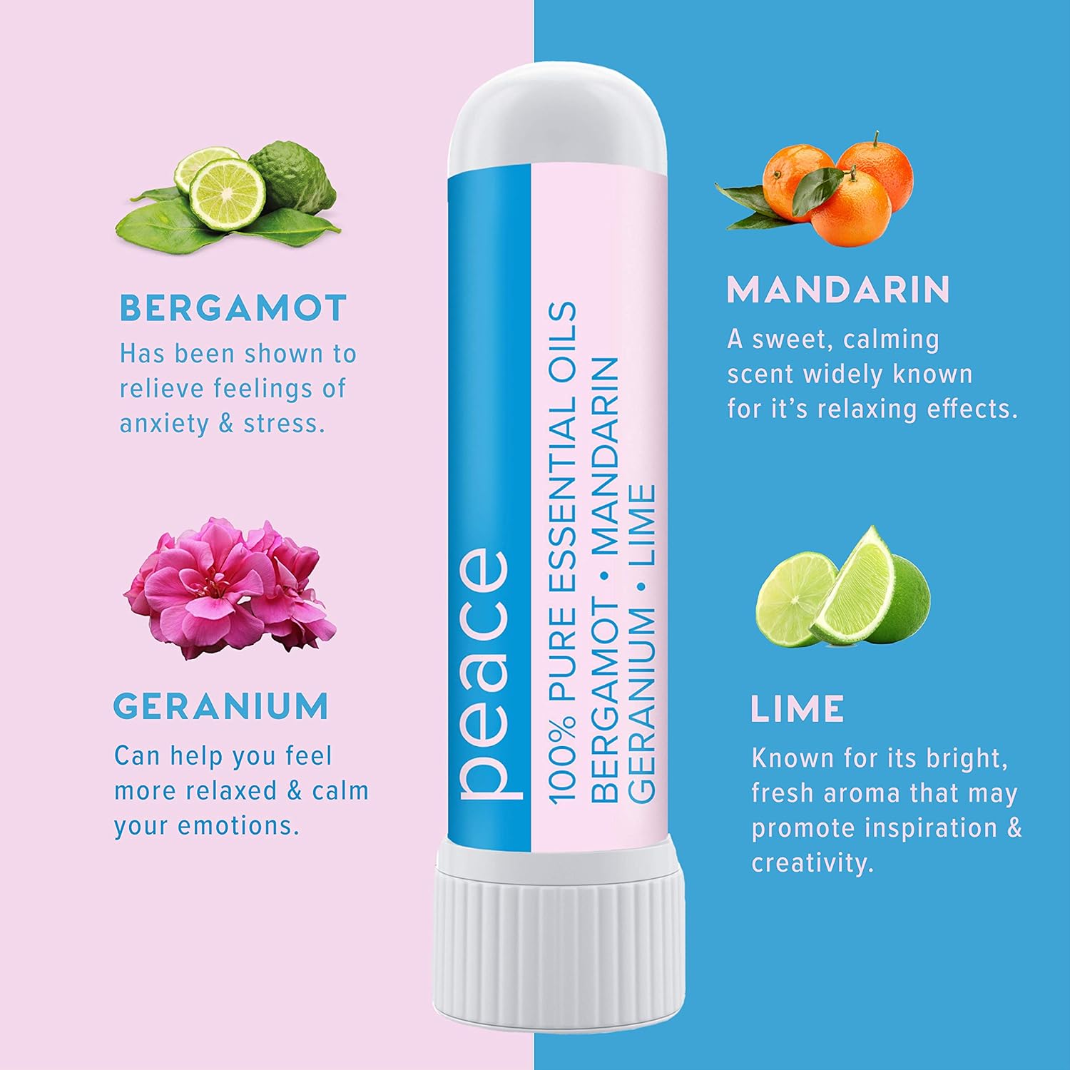 MOXĒ Peace Nasal Inhaler, Calming Essential Oil Blend, Tension Relief, Helps Relaxation and Meditation, Soothing Fragrance, Bergamot, Mandarin, Geranium, Lime, Made in USA (3 Pack)