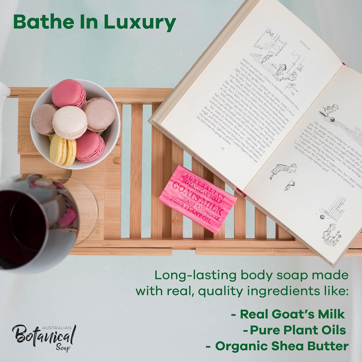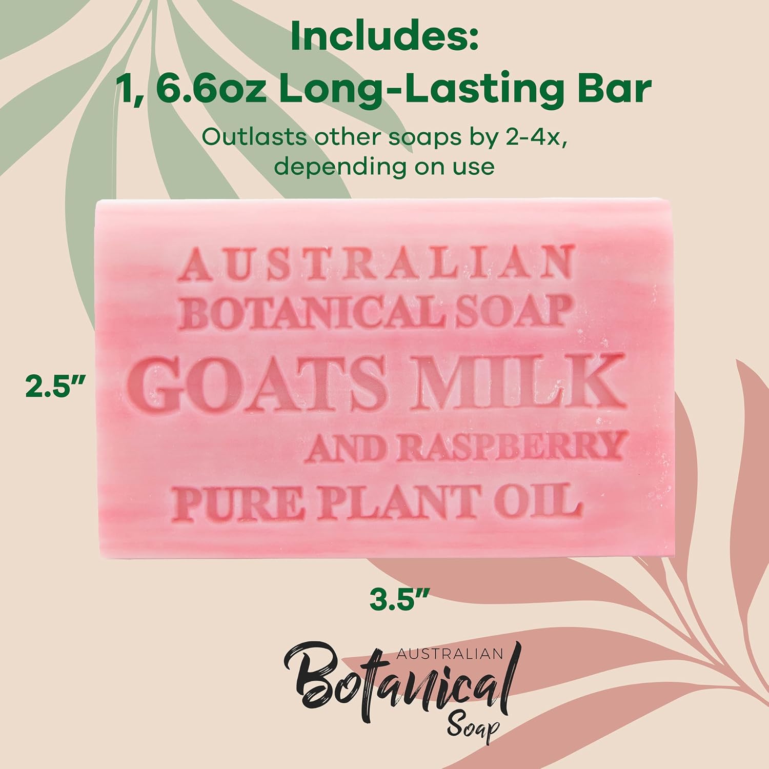 Australian Botanical Soap Goats Milk with Raspberry 6.6 oz Triple Milled Luxury Soap Bar Enriched with Shea Butter, Pack of 1