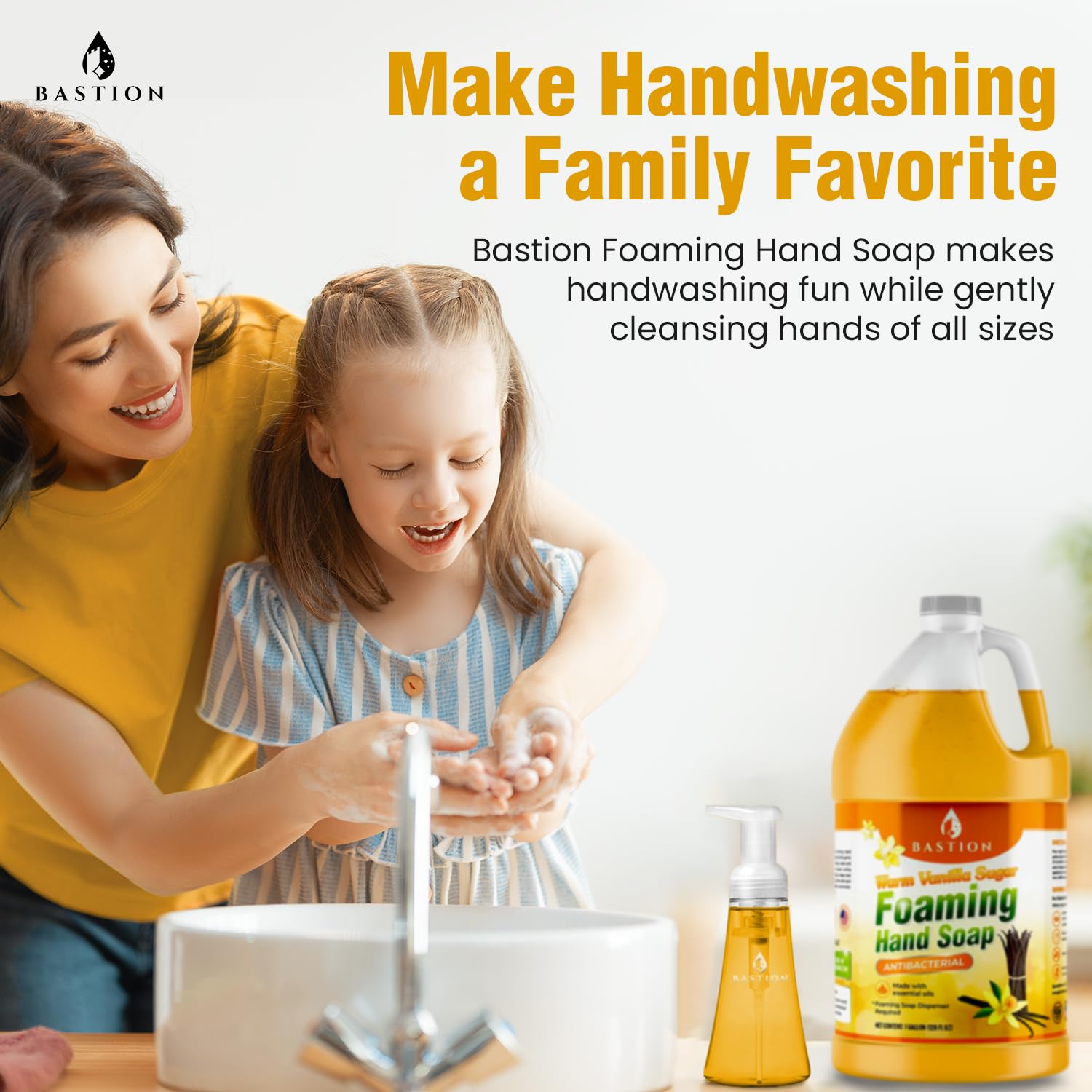 Bastion Foaming Hand Soap - Foam Hand Wash Refill for Bath And Body Works, Dial, Method, Michel, JR Watkins, Dove - Warm Vanilla Sugar w/Essential Oils in One Gallon (128 oz) Bulk Bottle