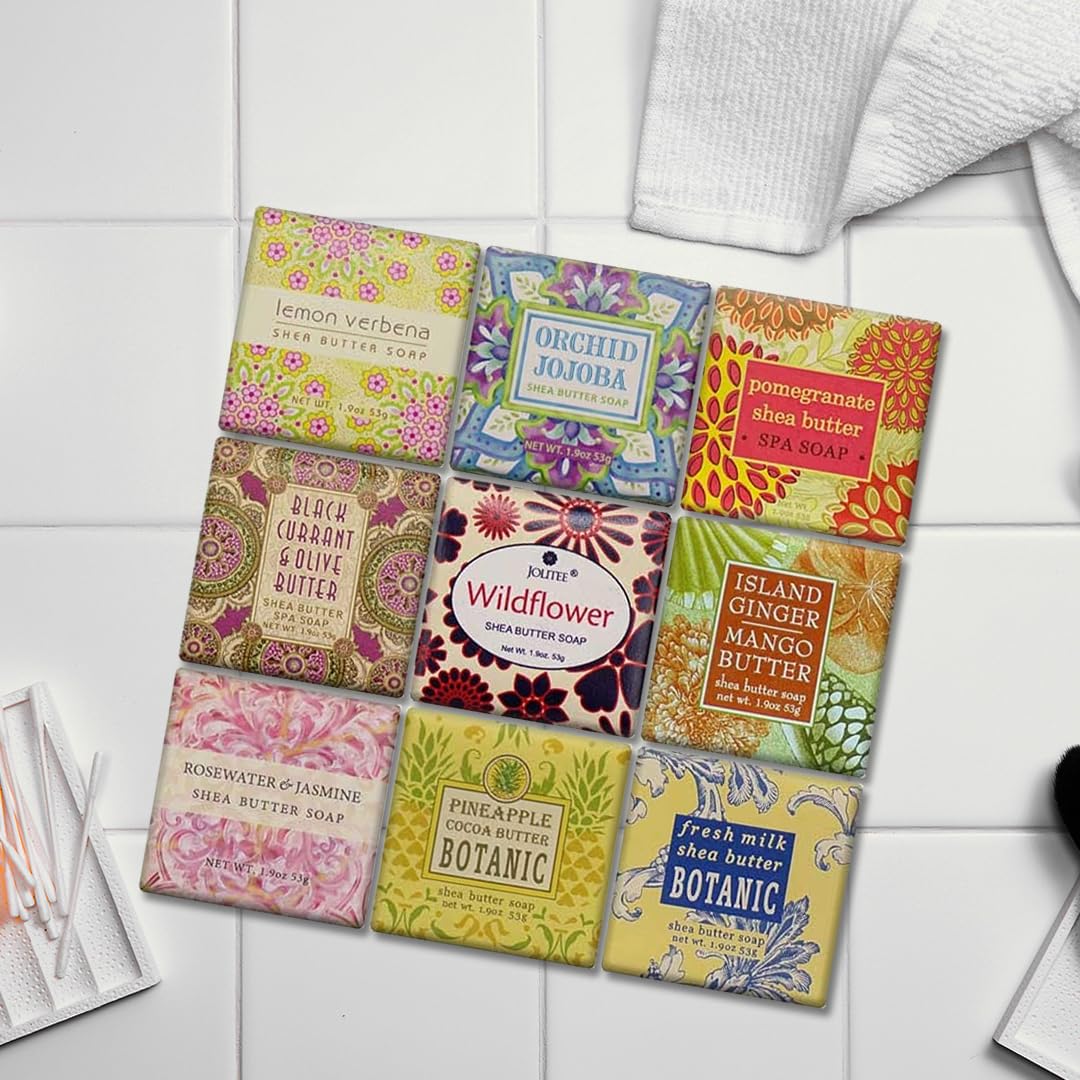 - Perfect Gift Idea; Beautifully packaged set of nine mini soaps; Ideal for any occasion, offering a variety of delightful scents