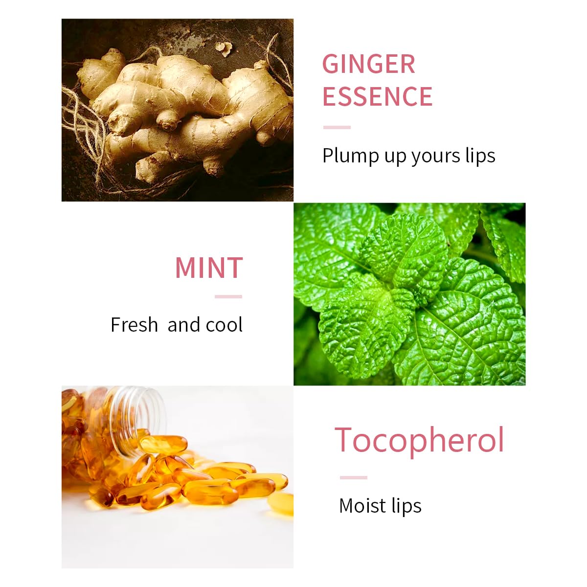 - Lip Plumper Set:This lip set can be used day and night.The yellow serum contains ginger extract to invigorate the lips and effectively plump the lips.The clear serum contains mint and squalane extracts to moisturize lips and delay lip aging