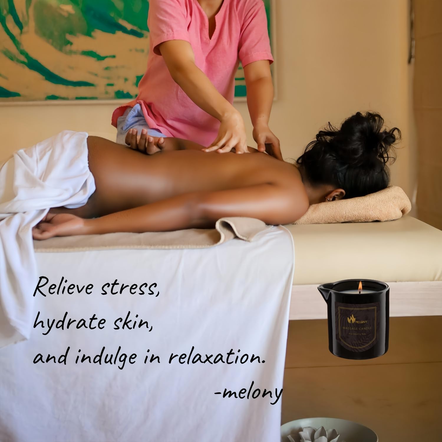 - β MOISTURIZING MASSAGE OIL FOR HOME SPA - 4-in-1 Massage Candle,Scented Candle, Massage Oil, Moisturizing Lotion and Body Balm in One. Ultra-Moisturizing Formula: Keep your skin hydrated, nourished and super soft with this treatment candle. Essential oil absorption after massage is not greasy. Naturally nourishing your skin for a 24 hours long-lasting treatment. Massage deeply to intensively nourish and hydrate the skin.