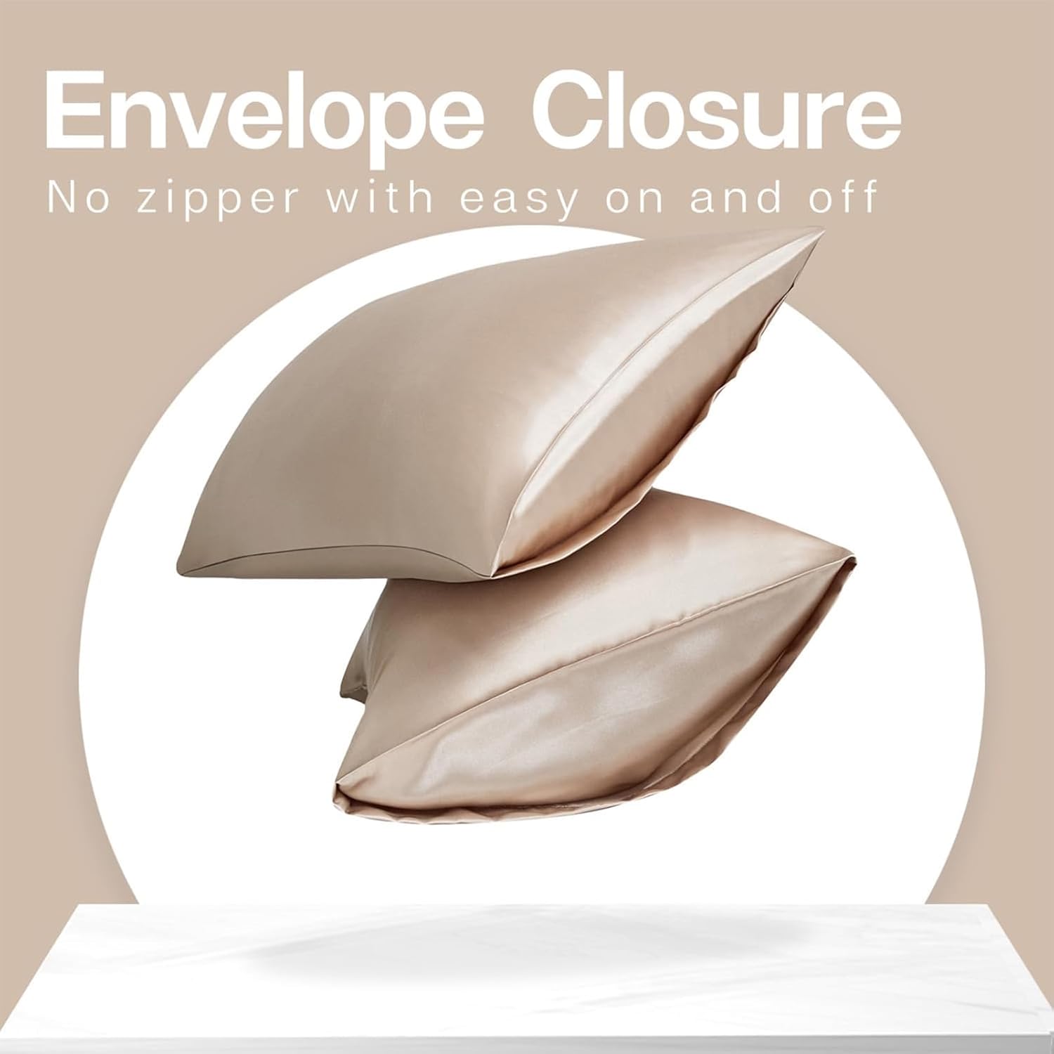 MR&HM Satin Pillowcase for Hair and Skin, Silk Satin Pillowcase 2 Pack, King Size Pillow Cases Set of 2, Silky Pillow Cover with Envelope Closure (20x36, Champagne)