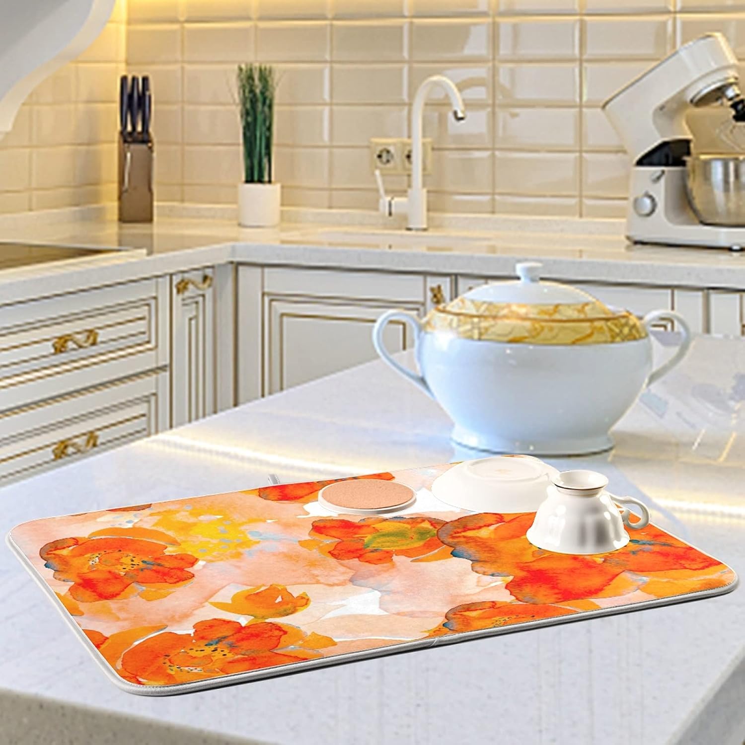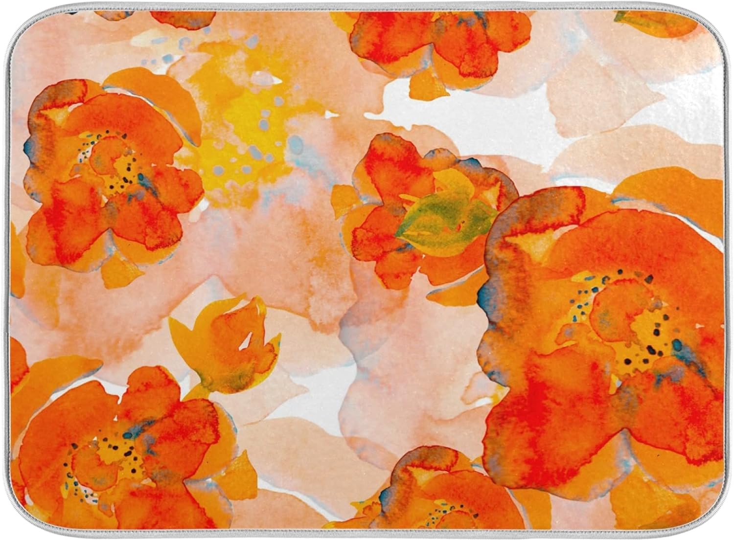 Dish Drying Mat for Kitchen Counter 18 x 16 Inch Corn Poppy Orange Flower Microfiber Dish Mat Drying Pad Absorbent Dishes Pad Dish Drainer Rack Mats