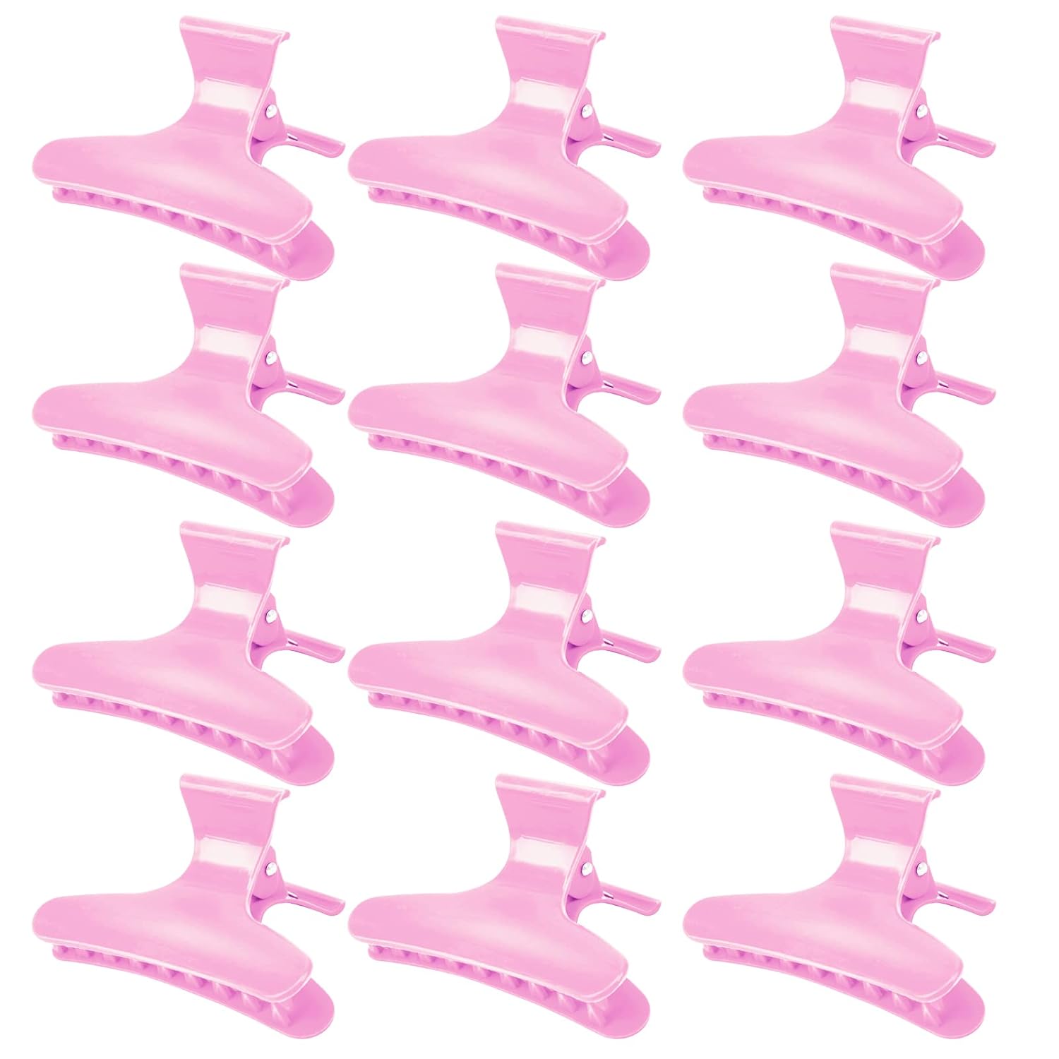 Ondder 12 Pack PInk Butterfly Hair Clamps Clips Hair Claw Clips Pro Salon Clip for Styling, Sectioning, Cutting, Coloring Hair Clips Hairdressing Salon Tool Hair Accessories for Women Girls