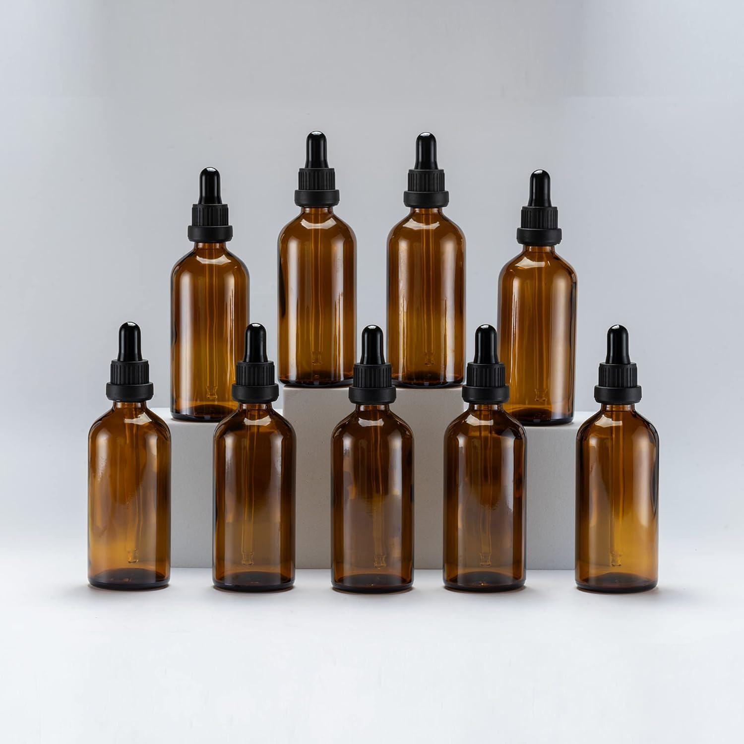 - [Glass Bottle with Dropper 4oz] Eye Dropper Bottles glass is amber, it designs to protect the essential oil against UV rays. Made from high quality glass.BPA FREE.Refillable, washable and travel friendly. leak proof