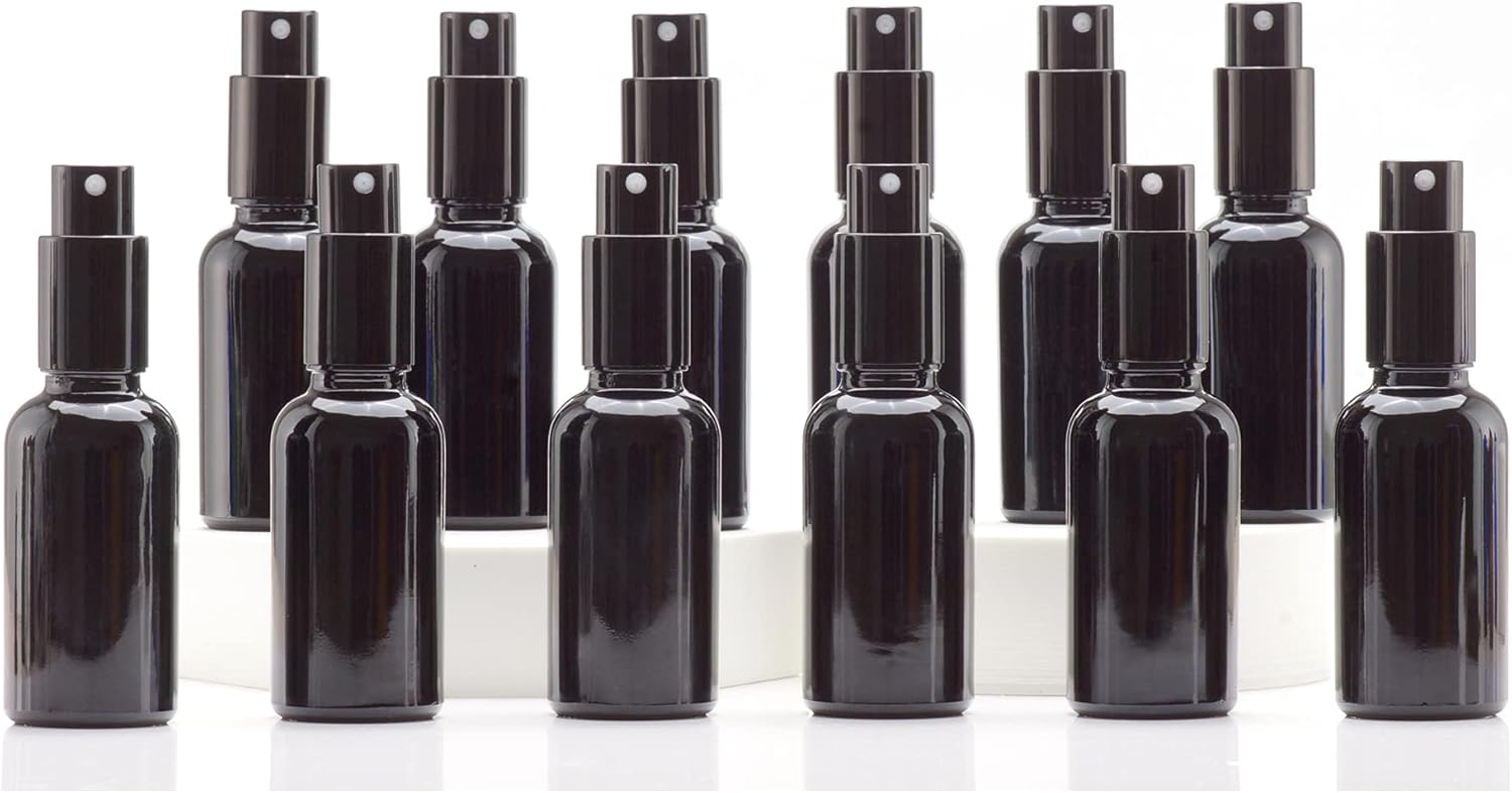 YIZHAO Black Glass Spray Bottles 1oz, with Small Fine Mist Spray, Metal Cap, Refillable for Essential Oil,Travel,Cleaning,Perfume,Aromatherapy,Makeup – 24 Pcs