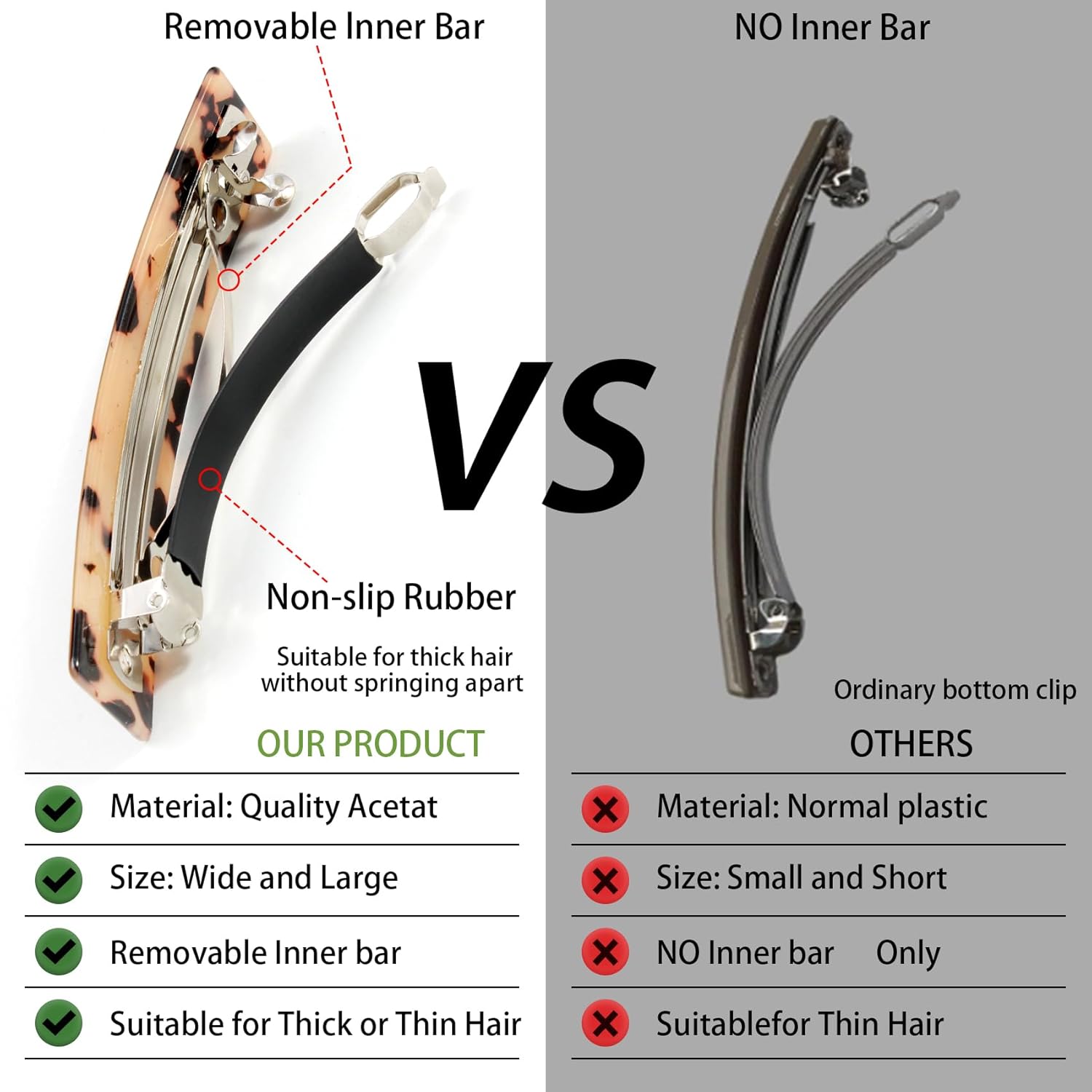 Hair Barrettes for Women - 4.13 Inch Tortoise Shell Acetate Hair Clips, Large French Retro Hair Clasps and Accessories for Thick Hair (3 Pcs)