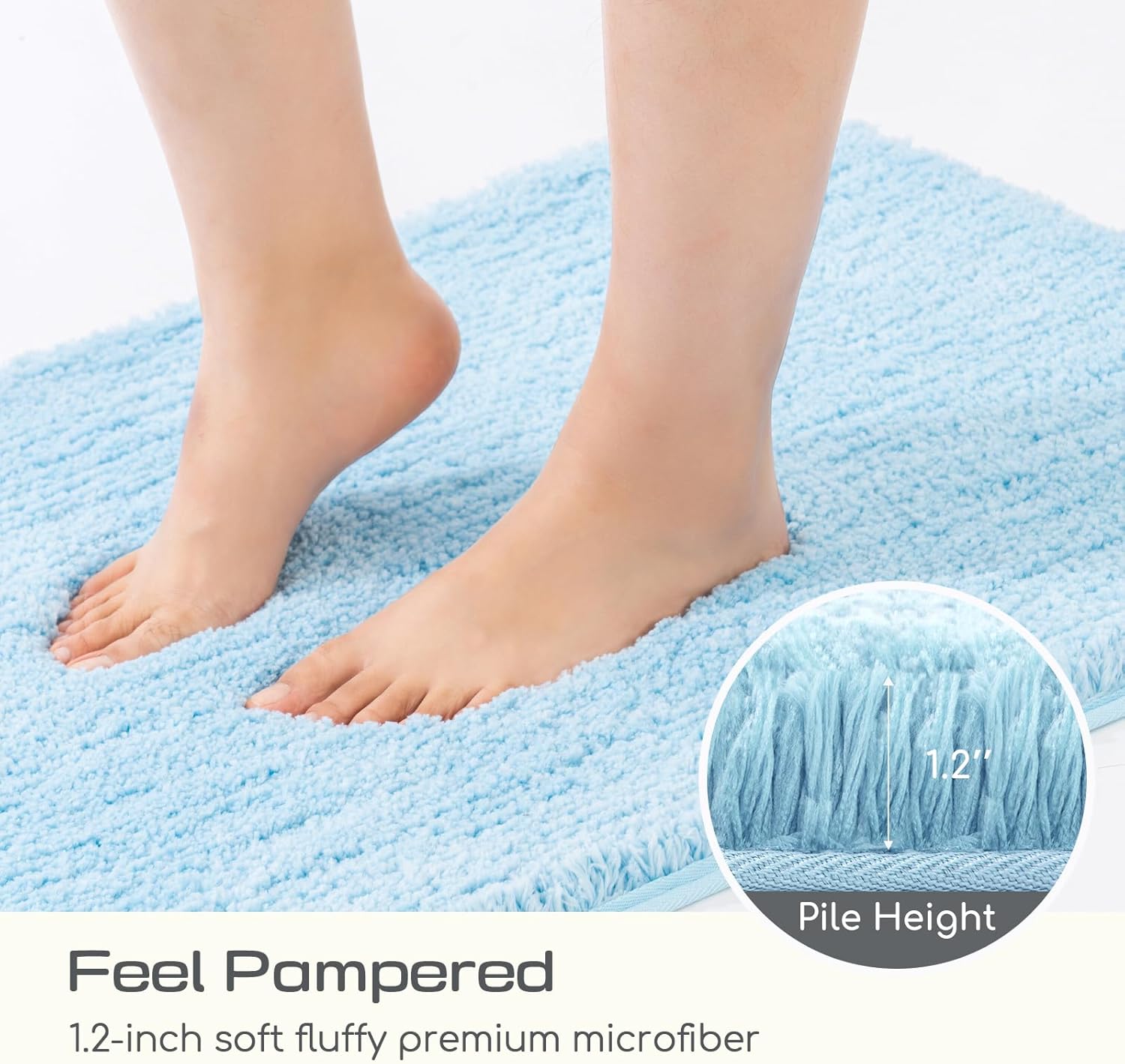 - 1.2-Inch Fluffy Microfiber - Experience unmatched softness and comfort with our bath mat made of 1.2-inch ultra soft microfiber. Thicker than other bath mats in the market, our tufted bath mat features the coziest, softest microfiber you have ever seen.