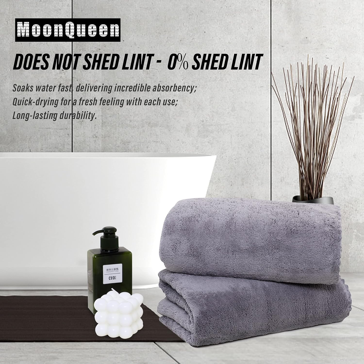 MOONQUEEN 2 Pack Premium Bath Towel Set - Quick Drying - Microfiber Coral Velvet Highly Absorbent Towels - Multipurpose Use as Bath Fitness, Bathroom, Shower, Sports, Yoga Towel (Grey)
